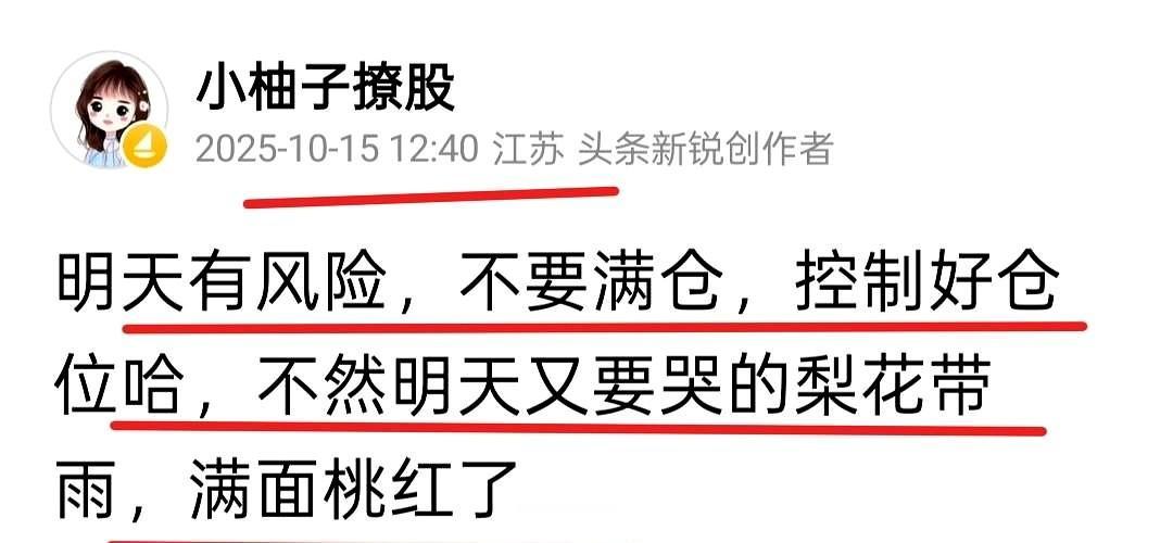 今天涨了,但是你真的赚钱了没,昨天提示风险,不少人呐喊,缩量上涨还要涨,那么今天它涨了,是不是你们认为的上涨呢? 创业板这里是一个超跌反弹,大概的目的就是老乡别着急走,我还能涨。 接下来有个会,大概就是维稳指数,个股不涨,赚钱效应一般好不了多少。 今天只看别动,我一个股吃了8个点我都没赚到钱,因为另外两个跌了,可想而知,情绪不行吧… 网友对此说道: 胖柚有人冒充你要我+她的小圈子 我质疑是不是本人 还说你90公斤就是胖柚本人 我说你苗条着呢 今天科技跌还说的过去,真是奇怪,我买的:燃气,银行,消费,农业,这些保守的家伙,今天也跟着跌[祈祷][祈祷][祈祷] 我不会选股,只买了证券ETF东财和中字头中国船舶,中国平安,中海油,觉得这样稳陈少亏些吧?其它的等老师的导航再买了啰 美女老师厉害[送自己一朵花][送自己一朵花][送自己一朵花][给力][给力][给力][赞][赞][赞]