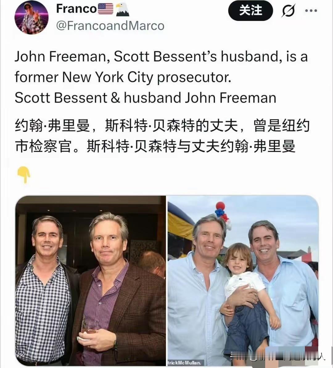 美,财长,贝森特,原来这哥们是个同性恋,难怪娘里娘气。