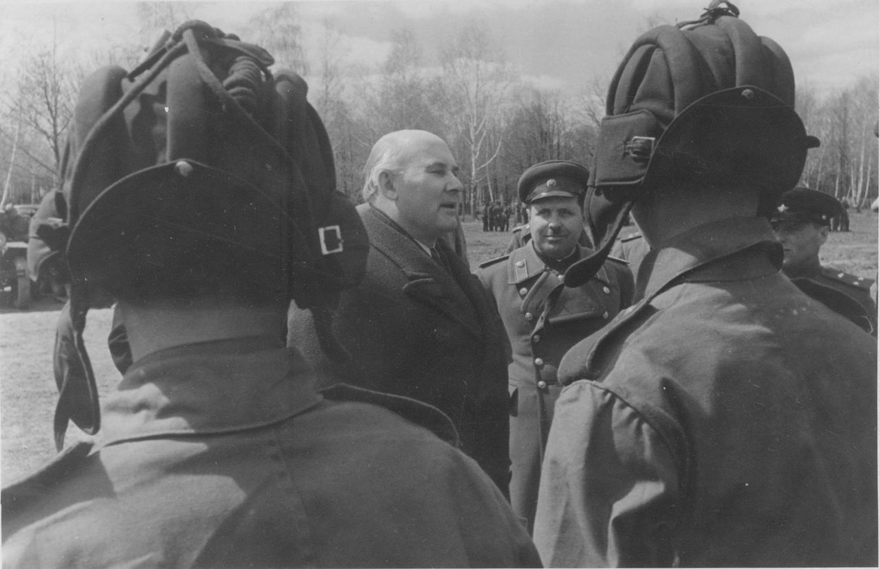 苏军中的爱沙尼亚部队——1943年5月6日,爱沙尼亚苏维埃社会主义共和国最高苏维埃主席团主席约翰内斯·瓦雷斯正在迎接第221独立坦克团的装甲兵。当天,第8爱沙尼亚步兵军隆重接收被授予“为了苏维埃爱沙尼亚”荣誉称号的第221独立坦克团。 第8爱沙尼亚步兵军是二战时期苏联红军中以爱沙尼亚人为主组建的一支特殊部队。这是苏联战时民族政策的一部分,旨在动员和利用加盟共和国的人力资源进行作战。该部队后来参与了从德军手中收复爱沙尼亚本土的战斗。 第221独立坦克团作为一支装甲部队,被配属给第8爱沙尼亚步兵军,以增强其突击和机动能力。因为其被授予"为了苏维埃爱沙尼亚"的荣誉称号,具有强烈的政治宣传意味。 约翰内斯·瓦雷斯是当时爱沙尼亚苏维埃社会主义共和国的领导人(参见图2)。