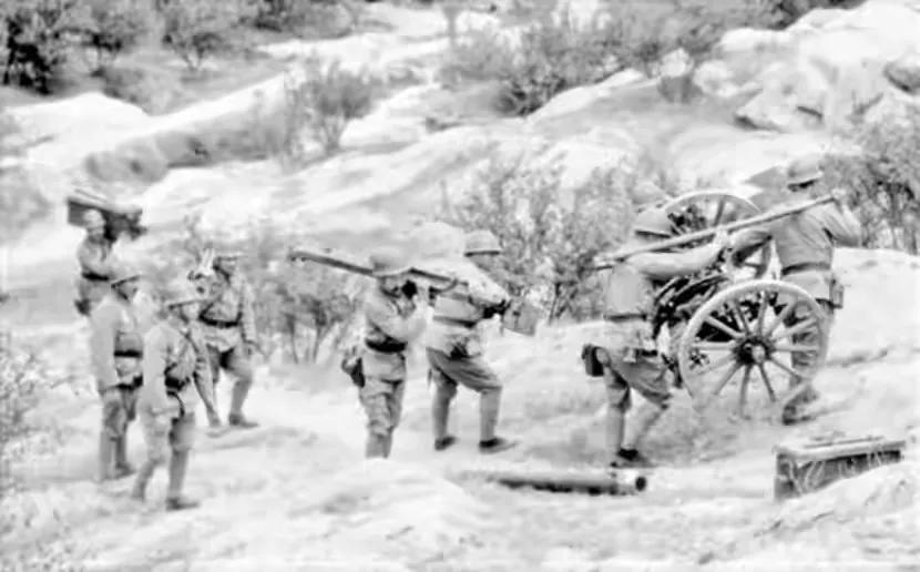 这是抗战时期日军的炮兵阵地。日本鬼子十分狡猾,他们把各类火炮隐匿于山间树林中,密集地向我方阵地发射炮弹。那时,中国军队缺乏这类远距离重武器,阵地常常被他们的炮弹摧毁。要是那时我方就有山炮、野炮,日军便不会如此嚣张。我军每坚守一处阵地,基本都会遭到日军炮火覆盖,伤亡惨重,而这大多都归咎于日军的炮火。 抗战后期,我八路军缴获了日军的这类火炮——山炮,并将其作为我军前沿阵地的主要攻击力量,给予了日军沉重打击。正如《游击队之歌》所唱:“……没有枪,没有炮,敌人给我们造;没有吃,没有穿,敌人给我们送上前……”