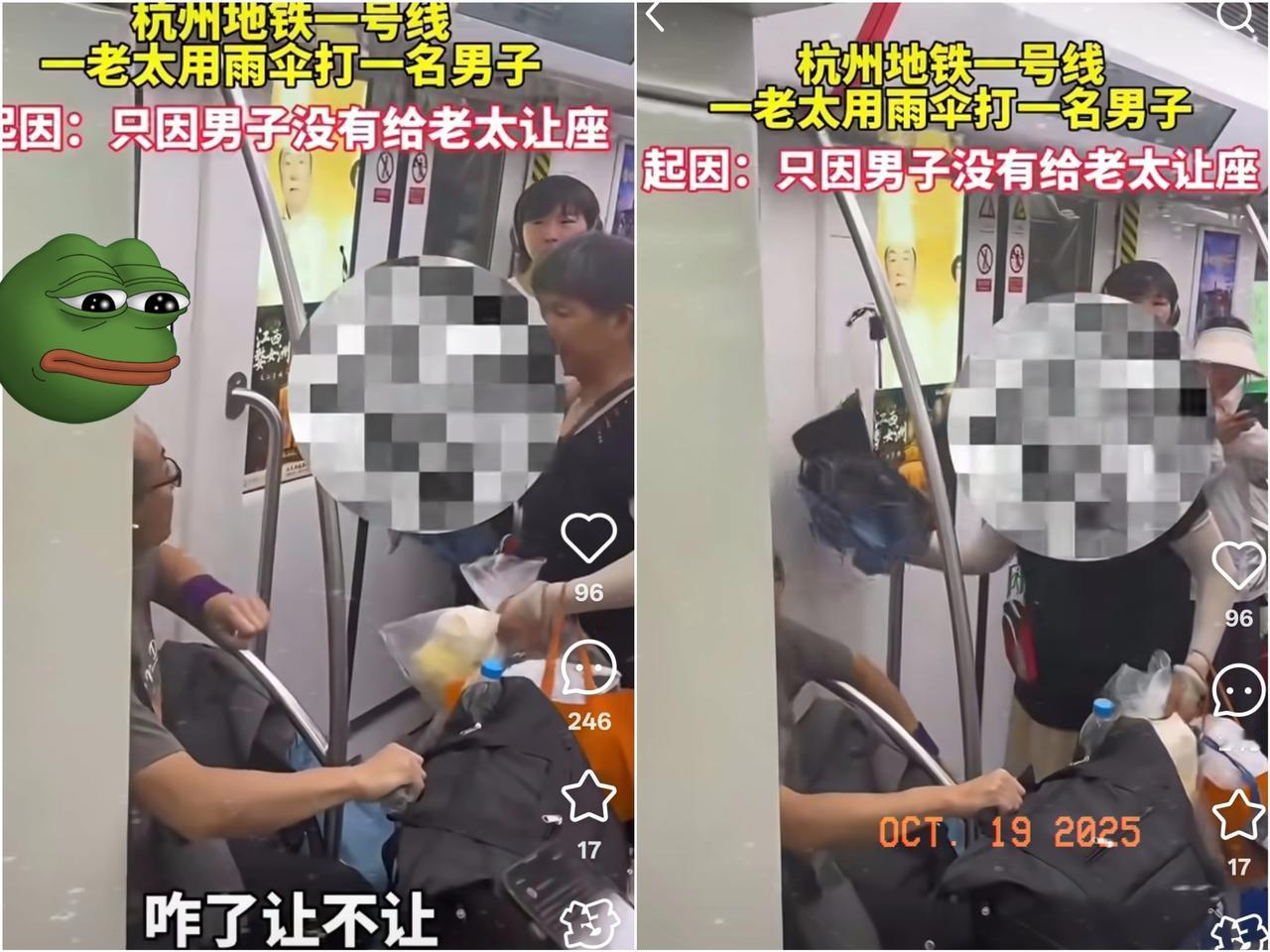 地铁里老太拿雨伞打男子,就因为没让座?这画面想想都让人瞠目结舌。让座本是美德,可不是强制义务,老太这一举动,显然是把“美德”当成了“必须”。 别再说什么尊老爱幼,真正的道德从来不是逼出来的。那男子身边堆着四五个行李,一看就是赶路的,他不让座未必是冷漠,可能真是累得站不住。再说地铁官方都说了,爱心专座本就不是特定人群的“专属座”,谁有需要都能坐。 最可怕的是这种逻辑:我老我有理,你不让座就是没素质,我还能动手。这哪是倚老卖老,根本是借着年龄耍横。让座本是情分,是自愿的善意,硬把它变成必须履行的义务,甚至动粗,只会把大家的善意都磨没了 。