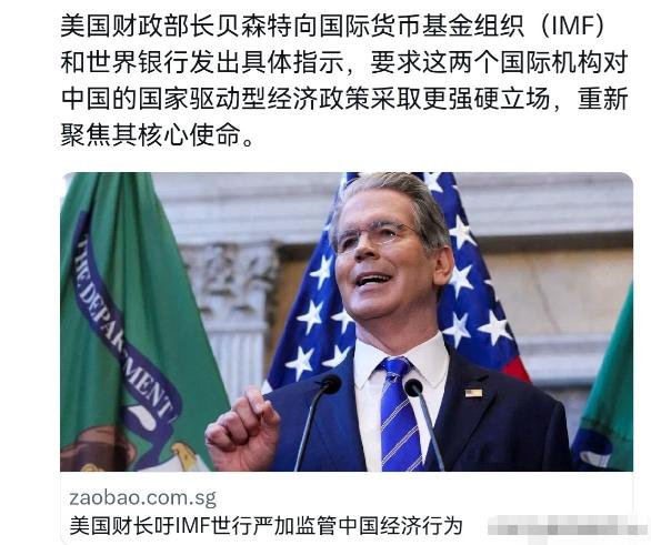 演都不演了!贝森特对国际货币基金组织和世界银行下了令,要求该组织监管中国的经济行