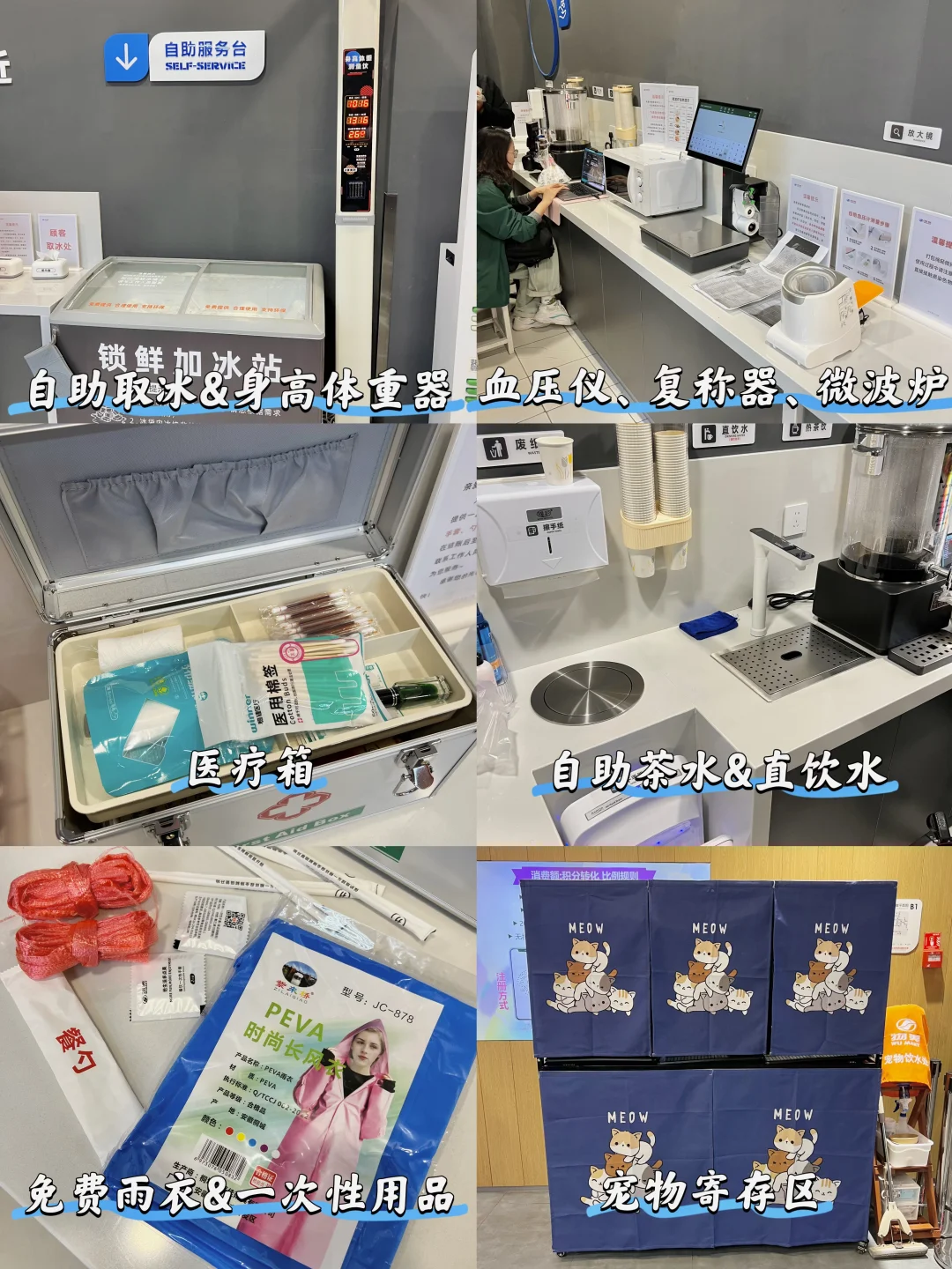 细节见真章,服务暖人心~显眼的宠物寄存区,让带“毛孩子”逛街不再是难题;遇到阴雨天,服务台提供免费雨衣,瞬间化解小尴尬;想马上享用刚买的包点,免费加热服务立刻满足这份迫不及待;特别设立的食品安全检测室,每天都会进行商品自检,保障大家的食品安全;还有非机动车充气服务、休息区自助茶饮机等等等等,这些润物细无声的细节让逛超市也多了份温度!小伙伴们快来顺义马坡店体验吧~