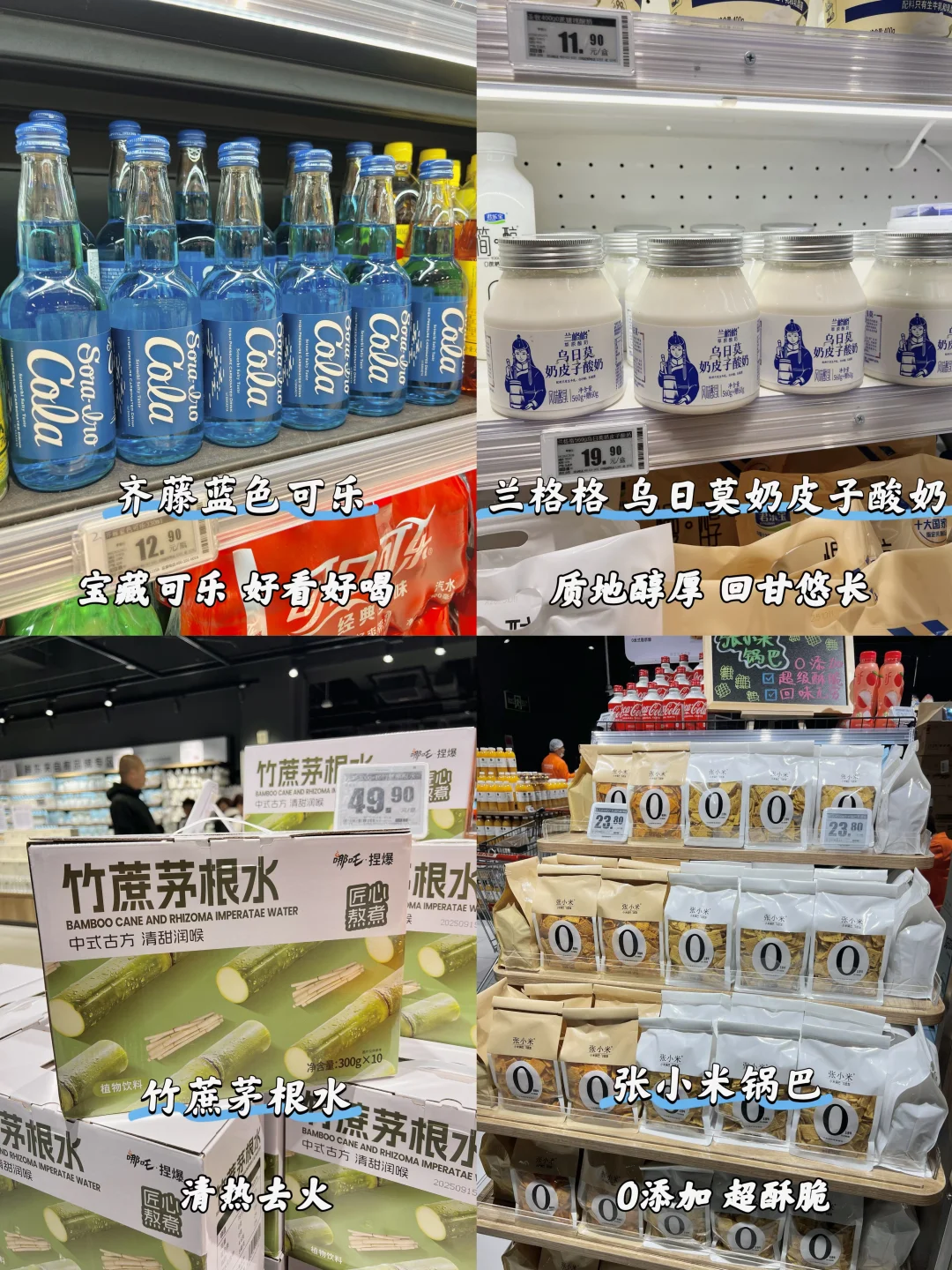我在熟食区和烘焙区逛了好久,试吃了九多肉多猪蹄、东来豆瓣甜肠和核桃满满,是我喜欢的味道,买了买了~还有特别火的胖东来DL100%葡萄复合果汁,这哪能错过,get!补货了齐藤蓝可乐,回家自己调一杯梦幻蓝饮品,是不是很美呀~物美的富硒鲜鸡蛋也是我家常备,个大又好吃,还富含硒元素哦~还有追剧好伴侣兰格格乌日莫奶皮子酸奶和张小米锅巴,一边看电视剧一边吃锅巴,都是小米的香味,简直太快乐啦,兰格格酸奶很醇厚,每一口都像在舔奶盖,超爽~这儿还有潮玩区,各种盲盒手办玩偶,也太丰富了吧!