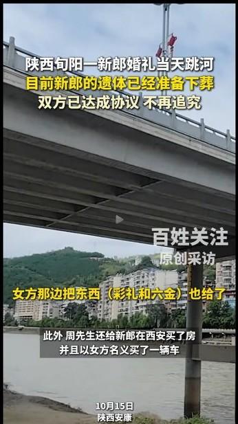 陕西新郎跳河原因找到了,新郎母亲透露细节。第一,女方要求新郎去女方家帮忙布置婚礼