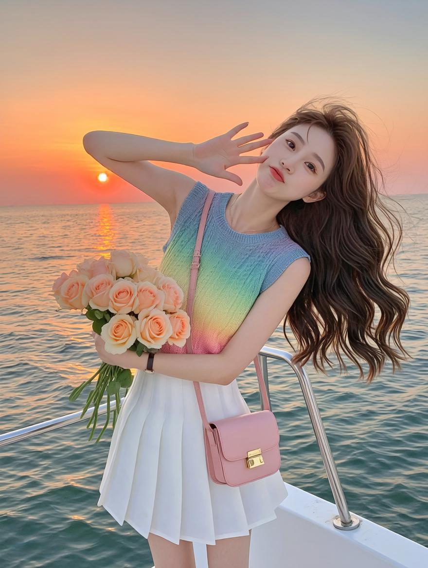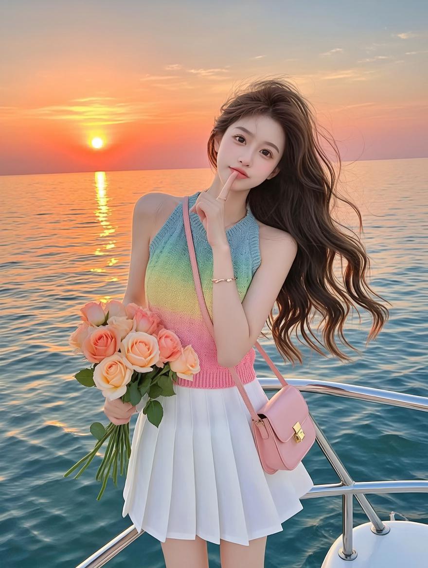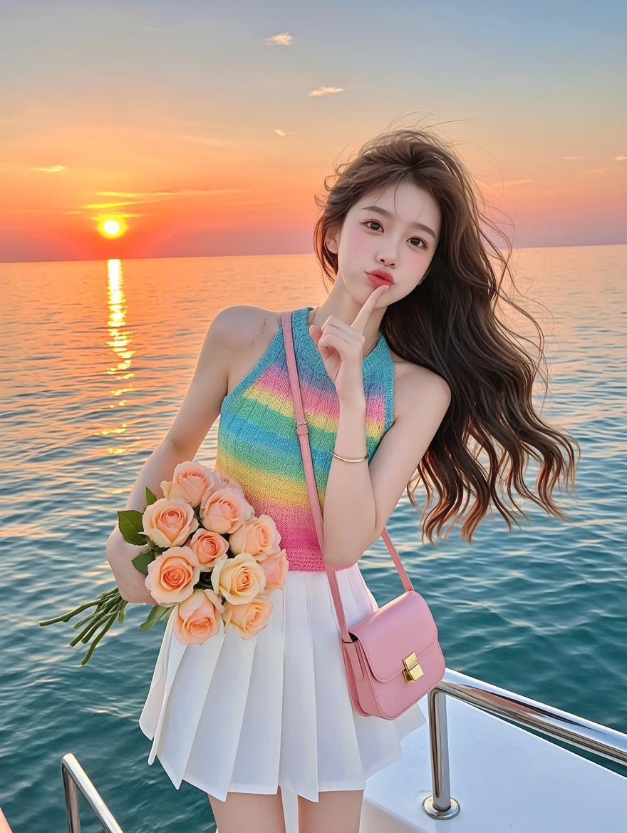梦幻粉裙少女粉裙仙女 花海中的仙子