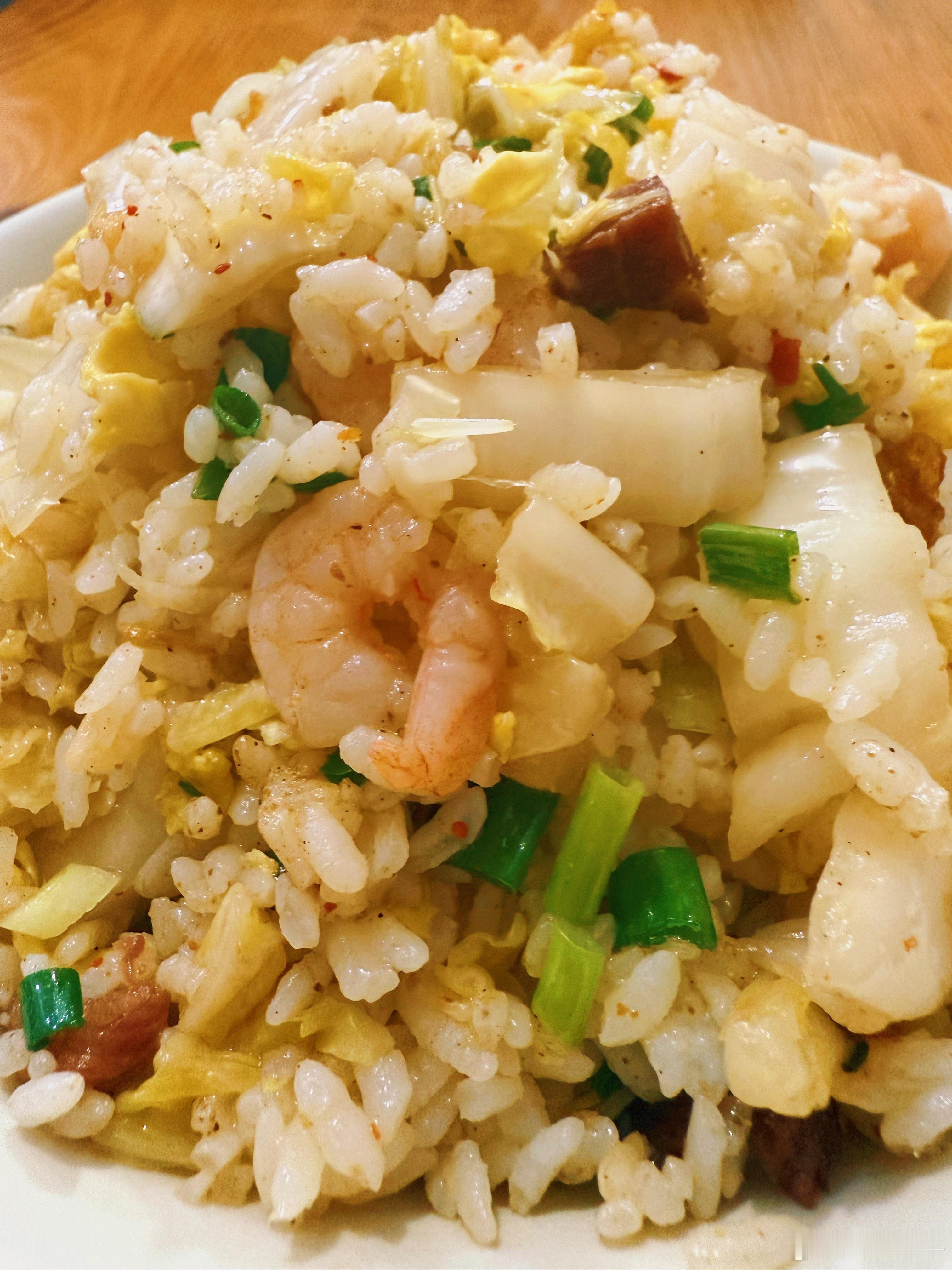 味道更是惊喜,辣白菜太会了!把炒饭常有的油腻感全给化解了,一口下去直接打开胃口,越吃越香。牛肉粒嚼着鲜嫩,就是虾仁小点,不算出彩但也不拖后腿,妥妥靠辣白菜的风味赢了,口味必须也得一星!