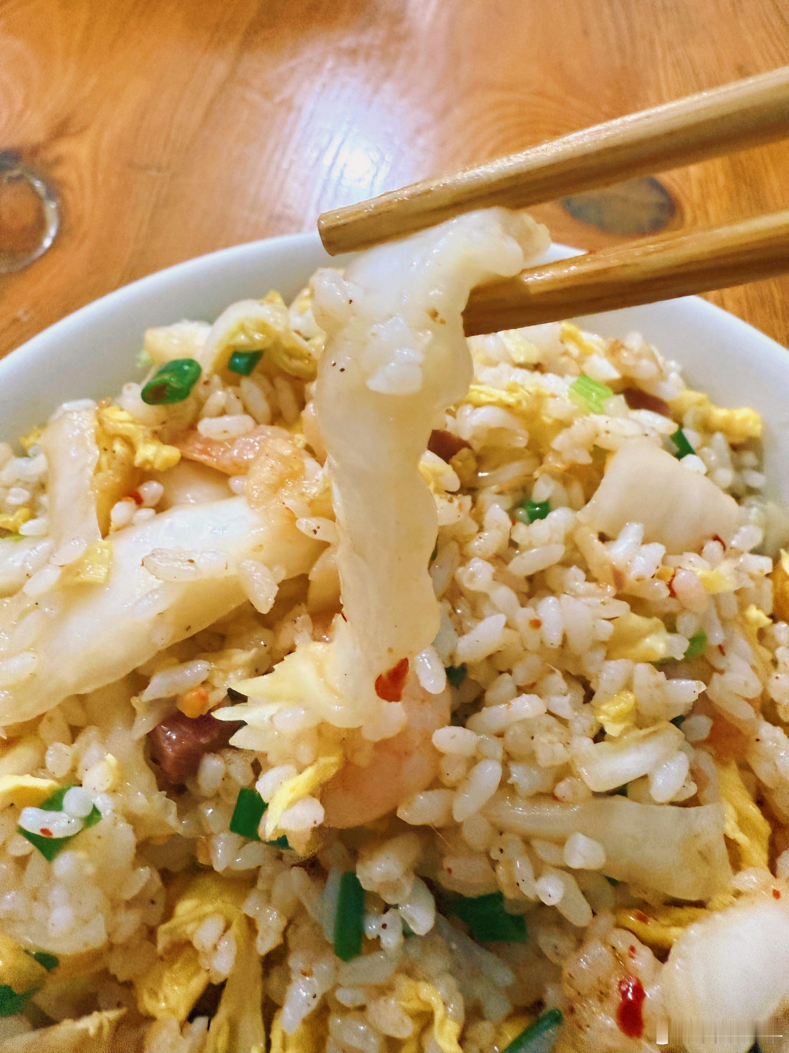 吃炒饭最讲究啥?那必须是锅气啊!这碗饭里,米饭颗颗分明不粘坨,牛肉粒、鸡蛋碎、虾仁也都清清楚楚没混在一起,大火猛炒出来的锅气直接拉满,这锅气必须给一星!