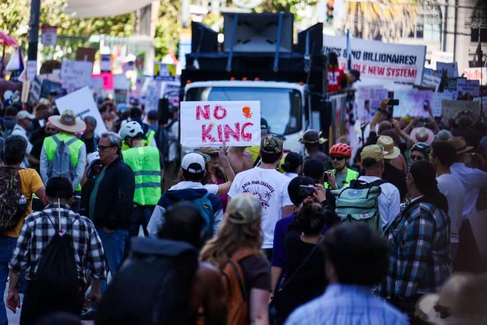6月14日,美国各地爆发约2000场示威游行,抗议活动以“不要国王”为名,反对特朗普政府移民、卫生、教育、立法等方面政策,共计数百万人参加。