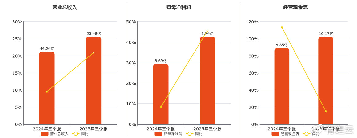 公司营业总收入为53.48亿元。归母净利润为9.74亿元。经营活动现金净流入为10.17亿元。