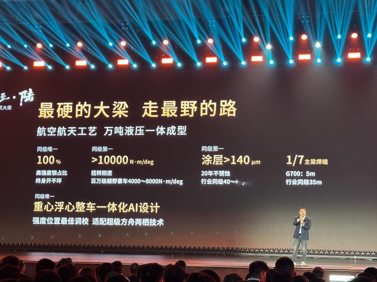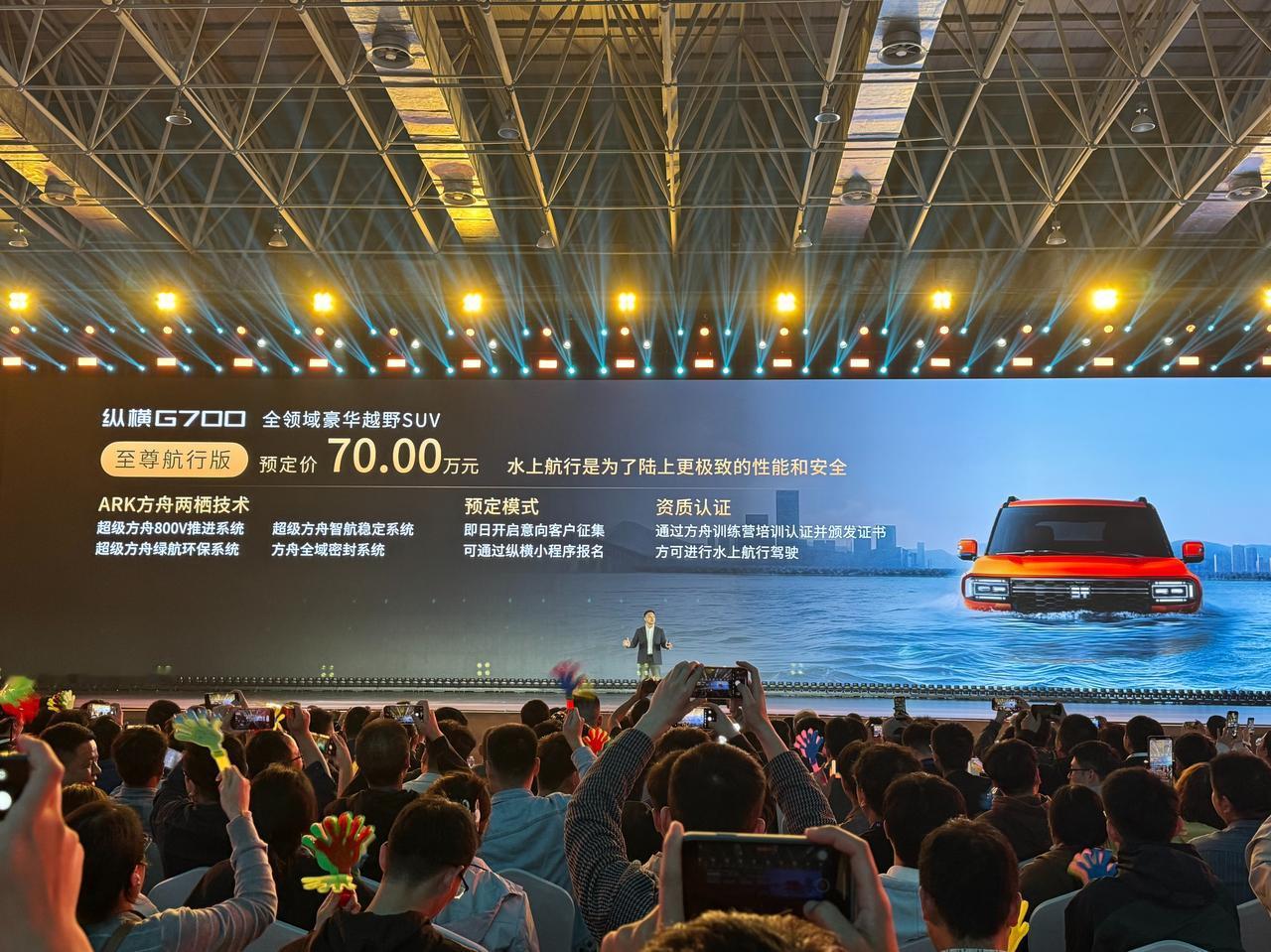 纵横G700全球上市,好好好,扛着反内卷创新产物大旗的纵横G700来了,正式上市指导价:32.99万元-41.49万元,限时超级焕新价:30.49万元-38.99万元,支持整车终身质保,如果跟我一样看完整场发布会,你会觉得这个价格真的超值! 另外,至尊航行版开启预订,预定价70万元,对就是那辆能水上航行驾驶的“神车”。不过预订后得通过培训认证并颁发证书,才能尝试那么“开”哈。估计很多人也好奇,一辆车怎么能横渡长江呢,主要是纵横G700搭载纵横方舟技术太牛了!果然啊内卷不是出路,创新才是核心动力!有点想试试! 大部分用户还是路上开,那纵横G700实力如何?搭载鲲鹏超能混动CDM-O,三擎冗余动力,百公里加速仅4.6s。2.0TD混动专用发动机,最大功率155kW,峰值扭矩340Nm,最高热效率45.95%。WLTC馈电油耗低至7.95L,满油满电综合续航1400km。电池也支持5C超充,SOC 30%-80%仅10分钟。以及前后双叉臂悬架,可变阻尼+CDC,乘坐舒适性有了。 那豪华呢?当然也不会少的,35.4英寸3K纵横天际屏+15.6英寸中控大屏+后排17.3英寸娱乐屏,功能全面。两套辅助驾驶,猎鹰500智驾,支持高速NOA、智能泊车等功能;华为乾崑智驾ADS,全新WEWA世界大模型,支持全域NCA领航辅助。“前所未至”的底气还在于,无人区卫星网络7*24小时连接,是的,纵横苍穹互联,越野永不失联。纵横G700,纵横四方,想野就野,够硬派,想城可城,很舒适。
