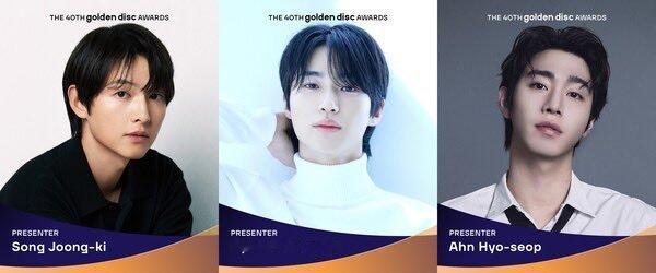 金唱片奖的主办方表示:宋仲基、边佑锡、安孝燮将作为颁奖嘉宾登上2026年1月10日在台北巨蛋举行的第40届金唱片大赏舞台。