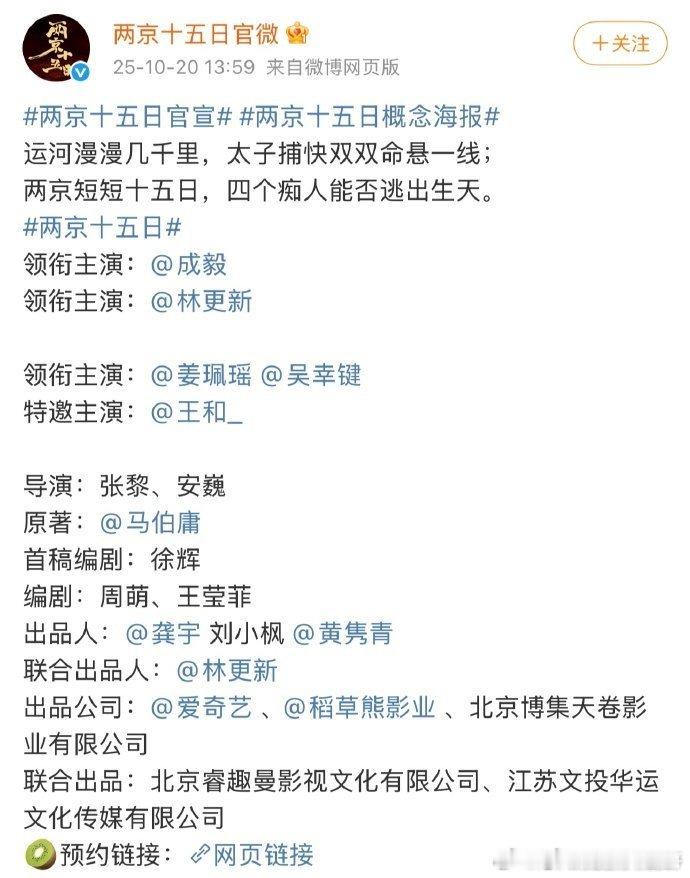 成毅《两京十五日》官宣阵容 ,已经可以预约了👌