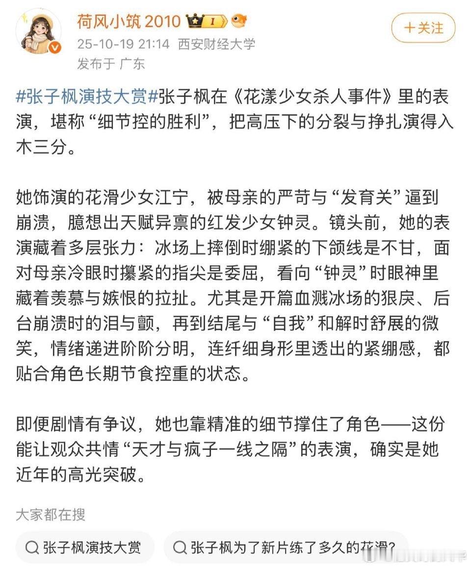 张子枫演技自来水 张子枫太会选角色了!《花漾》里的江宁让她收获满屏好评,8个月冰训的付出值得,演技被彻底认可!