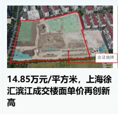 上海人最后的倔强就是上海的房价,上海徐汇滨江一块地拍出了14,.85万元/平方米的楼板价格,溢价率10%大家都懂的已经打过招呼了,因为是中海拿的地,所以也没有人跟他抢啦! 换句话来说就是明年新房,造出来最少也要涨10%,因为楼板价又涨了10%