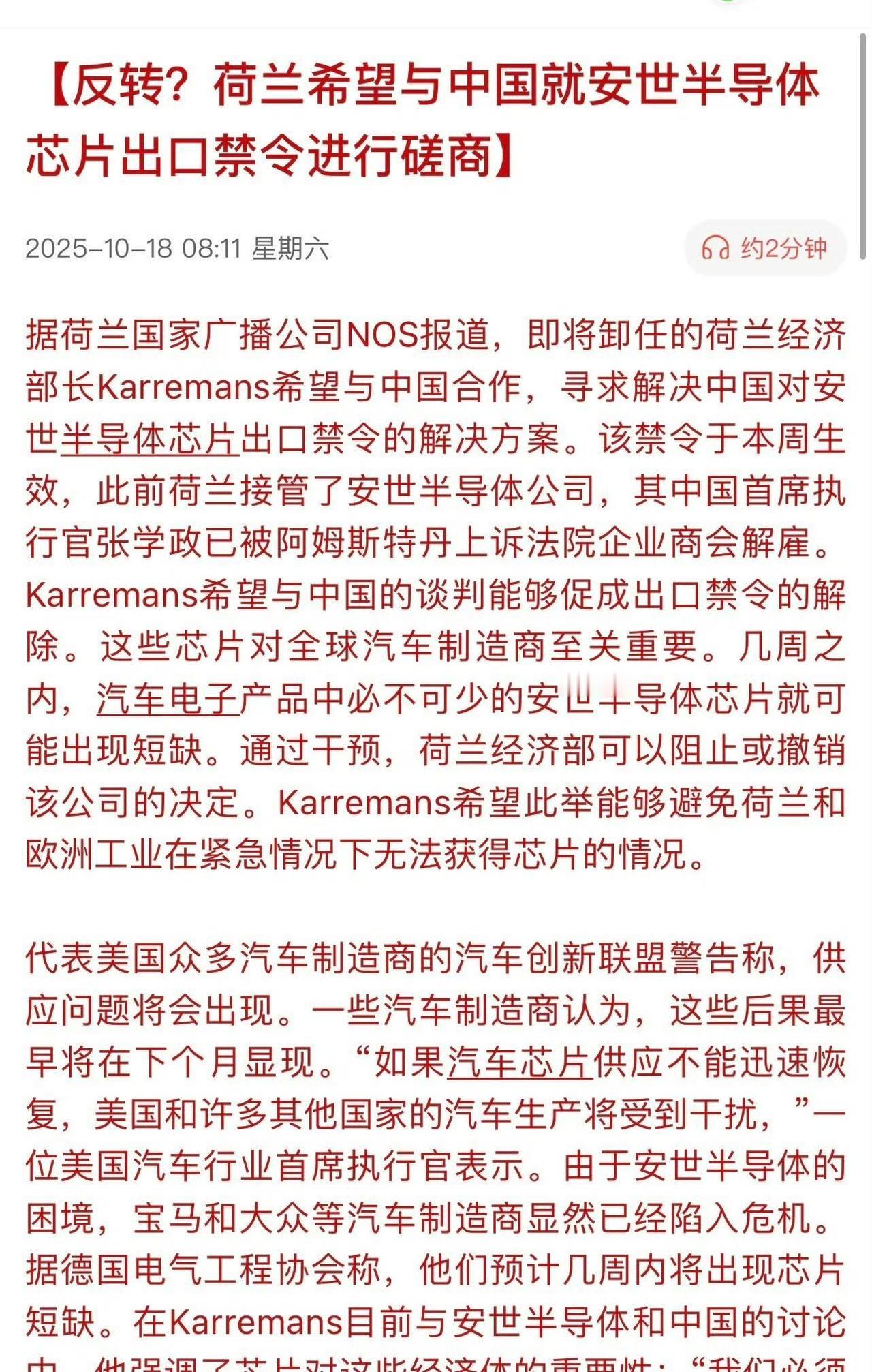 安世中国发表声明,与荷兰母公司切割,自己是中国公司,有能力保证正常运营,不会被外部势力所干扰。 安世这一声明发布得相当果断,直接划清了界限,既保护了自身利益,又展现了中国企业强大的韧性和应变能力。荷兰方面估计真的傻了,他们怎么也想不到,以为躺着就能收钱,如今却连自己的好牌也打不响了。安世中国的这次操作无疑给他们上了一课——别以为可以轻易拿捏中国企业。 为什么荷兰人会失败呢?原因当然很简单。安世中国的核心产能都在国内,最重要的封装测试离不开中国的市场和工厂。而且晶圆虽说是工业生产的重要一部分,但归根结底,只是半成品。没有中国强大的封装能力,这些晶圆最多就是一堆无法变现的无用材料。更何况,安世中国并非孤立的,它背靠闻泰科技这样一个身强体壮的“爷爷”,就算荷兰母公司再怎么想控制,也根本没那个实力说了算。这次的事件给欧洲企业敲响了警钟,也说明依赖中国合作的全球性格局,已经深深嵌入了高科技产业链,想随随便便改变,根本就是做梦。 如果类似的事情发生在其他国家,比如俄罗斯,恐怕完全不是这回事。俄罗斯的产业链比较薄弱,市场需求又较窄,绝大多数企业都无法自我供应维系。换句话讲,别说独立切割了,恐怕连拿出与西方抗衡的资本都困难吧。但中国显然不同,国内强大的市场需求和稳定的制造能力,让安世中国即便脱离荷兰,也能继续维持自身正常运营,甚至更进一步谋求发展。这背后是中国庞大的工业基础在支撑,有了这块基石,安世中国根本不惧任何外部威胁。 对安世半导体本身来说,它并不是一家普通企业。作为总部设在荷兰的半导体公司,它曾经做好自己的高科技企业形象并享誉国际。然而这一形象因种种政治因素陡然改变,当他们选择用“海盗式抢劫”的方式妄图控制中国公司时,他们自己也毁了自己的品牌形象。荷兰人拿中国的技术赚钱,却转身打算对中国公司下手,这样的做法不仅令人愤怒,更让全球看清楚西方所谓的契约精神有多么虚伪。 荷兰人这次操作背后还是西方的老套路,用所谓的规则和制度限制中国企业,妄图增大自己的控制力。然而他们低估了中国企业的底气——既能“顶住压力”,也能灵活应对局势。中国企业的发展早已不是从前那个只能靠技术引进的阶段,而是实实在在拥有全球影响力和创新能力。从安世中国这次果断的切割可以看出,中国企业正以更成熟、更自信的姿态面对国际风云,更重要的是,我们的产业生态已经越来越强大,能让挑战者到头来碰一鼻子灰。 还有一点值得注意。安世中国切割后,不需要再向荷兰母公司缴纳利润,这看起来是损失,但从长远来也是一次巨大的商业解脱。没有了荷兰母公司这层约束,企业完全可以根据国内市场实际需求调整战略,甚至还能在更高层面腾出手脚去优化业务。这样的发展环境为企业提供了更大的自主空间,而这也许是荷兰母公司最不希望看到的结果——这意味着它失去了中国这个巨大的创新与市场依靠。 说句实话,荷兰这次表演的“抢劫戏码”其实并不让人意外。世界局势越来越复杂,一些西方国家总想用经济手段对中国实施打压,表面打着“规则与价值观”的旗号,实际上却在试图延续过去的殖民老路。但安世中国的行动无疑让他们吃了个闭门羹。期待未来,中国企业能够从这些事件中汲取更多经验,用实力和智慧让世界看到:没有人可以随随便便拿捏真正站起来的中国