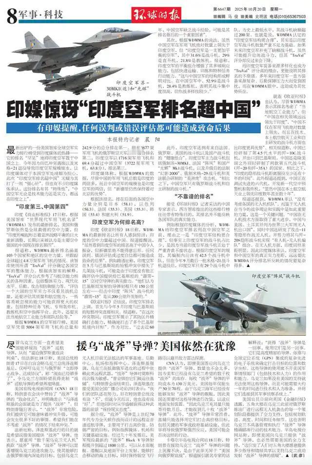 印度又被美国当枪使:空军排名世界第三背后的捧杀阴谋 美国智库突然把印度空军排在中国前面,这事儿就跟把小学生夸成博士一样离谱。看看实际家底:中国军机3733架对印度1716架,歼-20隐身战机都装备200多架了,印度连隐身机的影子都没摸着。美国这套"捧杀"操作,分明是把印度往火坑里推。 印度媒体吹嘘排名时故意装瞎——5月份自家苏-30MKI刚被巴基斯坦用中国导弹揍下来,现在居然好意思说自己空军更强?网友说得精准:"万国牌装备凑出来的第三名,实战中连中巴合研的枭龙都打不过"。美军红旗军演数据打脸更狠:中国飞行员年实弹训练180小时,比印度多出整整60小时,相当于每月多练5天。 美国这手牌打得阴险:先哄印度"你比中国强",刺激它疯狂买军火。法国阵风、美国阿帕奇、俄罗斯S-400...买得越多,后勤越乱。中国早看穿这套路,95%装备自研自产,卫星侦察网是印度10倍,防空导弹阵地是印度4倍。兰德公司推演结果最打脸:中印若冲突,中国72小时就能掌握制空权。 最讽刺的是,美国防部自己的《中国军力报告》都在拆台:中国206颗军用卫星盯着印度,1200个防空导弹阵地随时待命。印度呢?22颗卫星、314个防空单元,还沉浸在"世界第三"的幻想里。美国智库这番操作,就像给糖尿病人喂糖丸,表面甜言蜜语,实际要人命。等印度真信了自己"比中国强",怕是连怎么死的都不知道。 清醒点吧,现代战争比的是体系不是纸面数据。中国空军的目光早已投向第六代战机和空天一体战,而印度还在为美国画的"第三名"大饼沾沾自喜。这种被人当枪使还帮数钱的愚蠢,实在令人叹为观止。