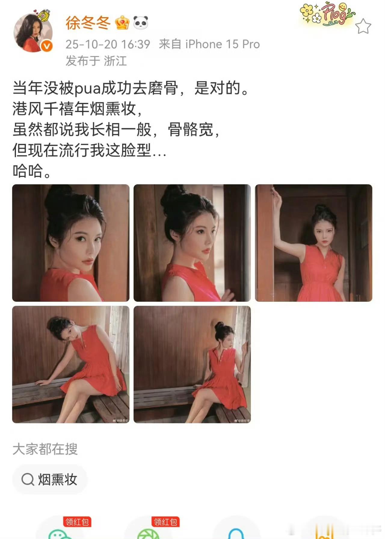 徐冬冬当年没有被PUA去磨骨是对的 徐冬冬拒绝磨骨太清醒!没被“骨骼宽显脸大”的PUA话术带偏,现在看她的骨相抗老还独特,港风妆眼尾一挑超有范儿,美就该有多种样子!