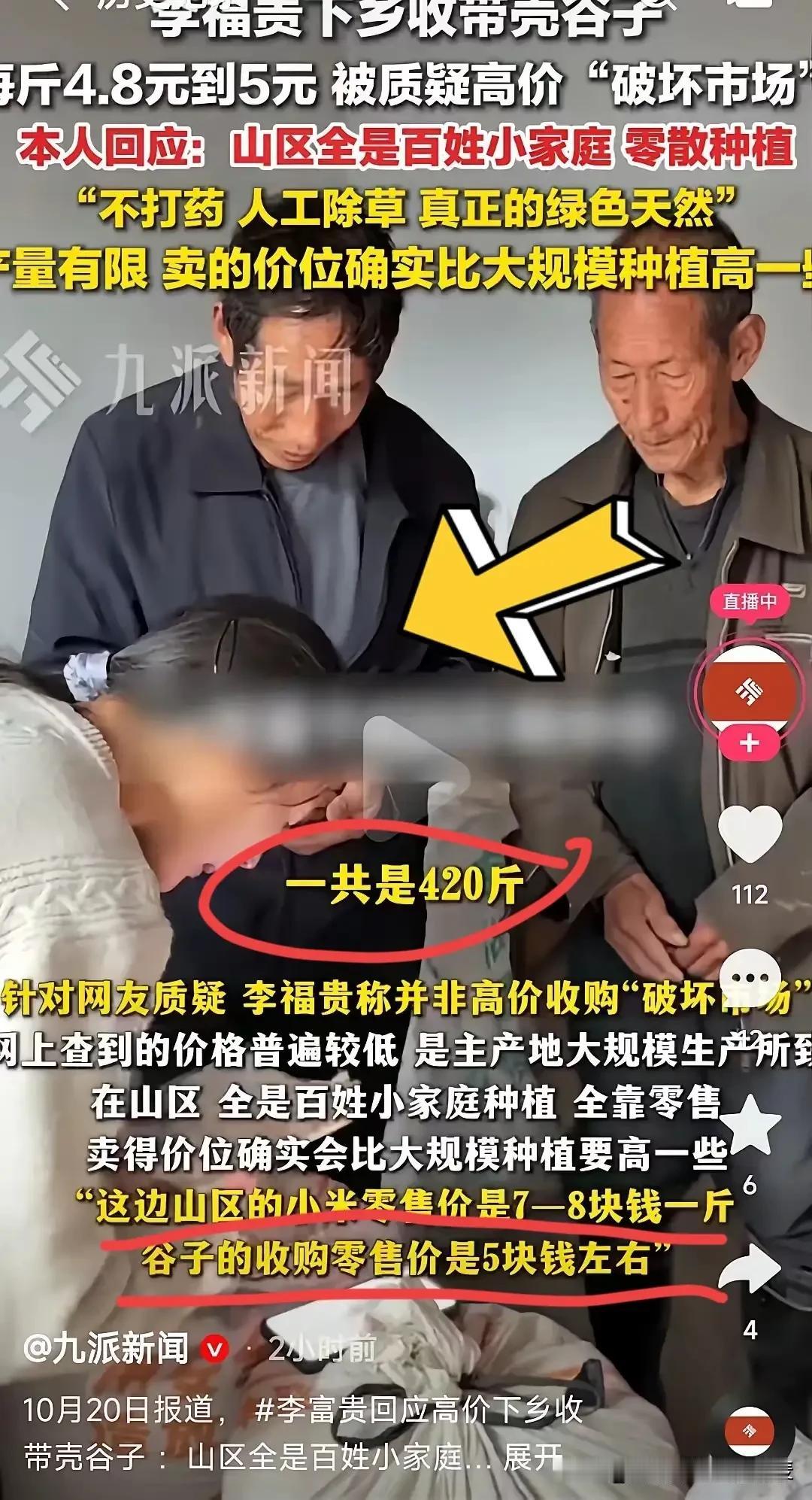 这是多怕农民挣钱啊,给扣这么大顶帽子! 网红李富贵下乡收稻谷,一斤给到4块8