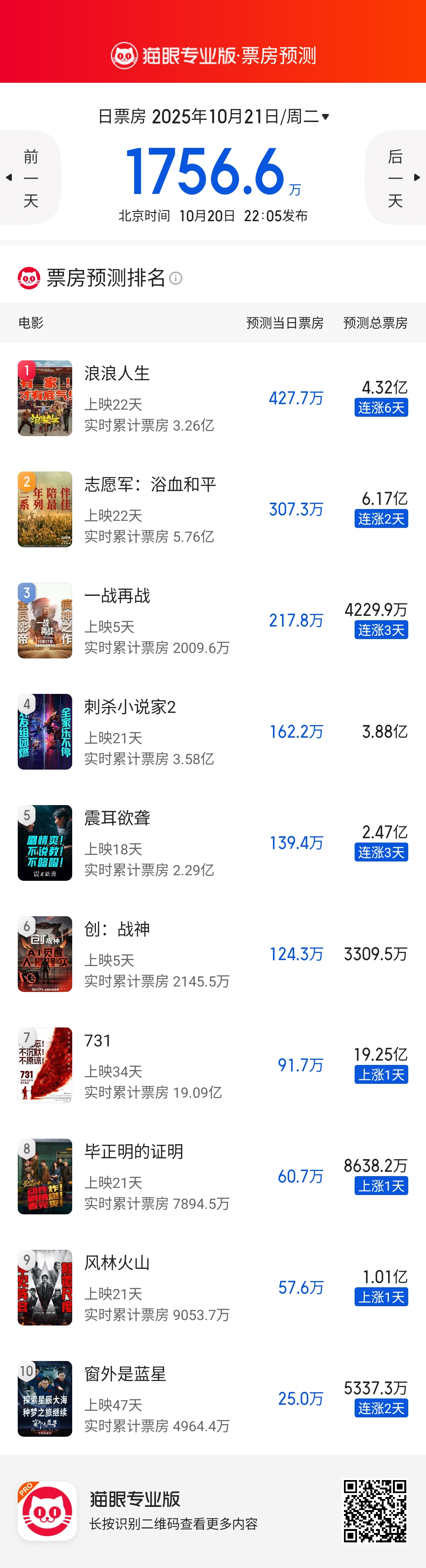 造浪吧国庆档 猫眼专业版国庆档票房预测发布,看上去都不行,看有没有口碑特别强势的