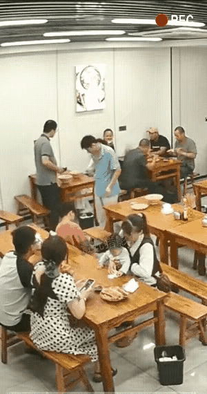 看这女的坐在那的姿势就不好惹,估计快要发作了,没想到女的脾气这么暴躁,把饭店里的