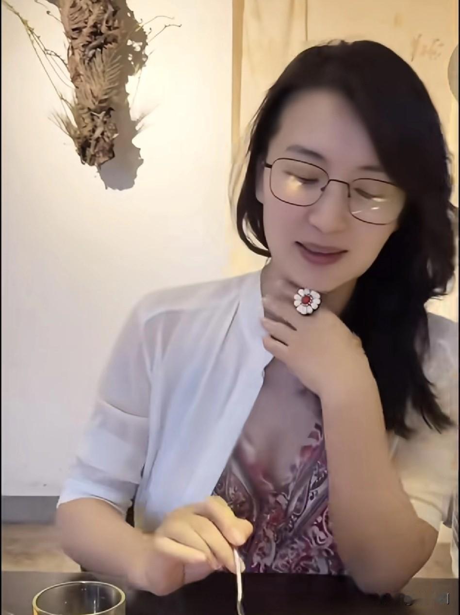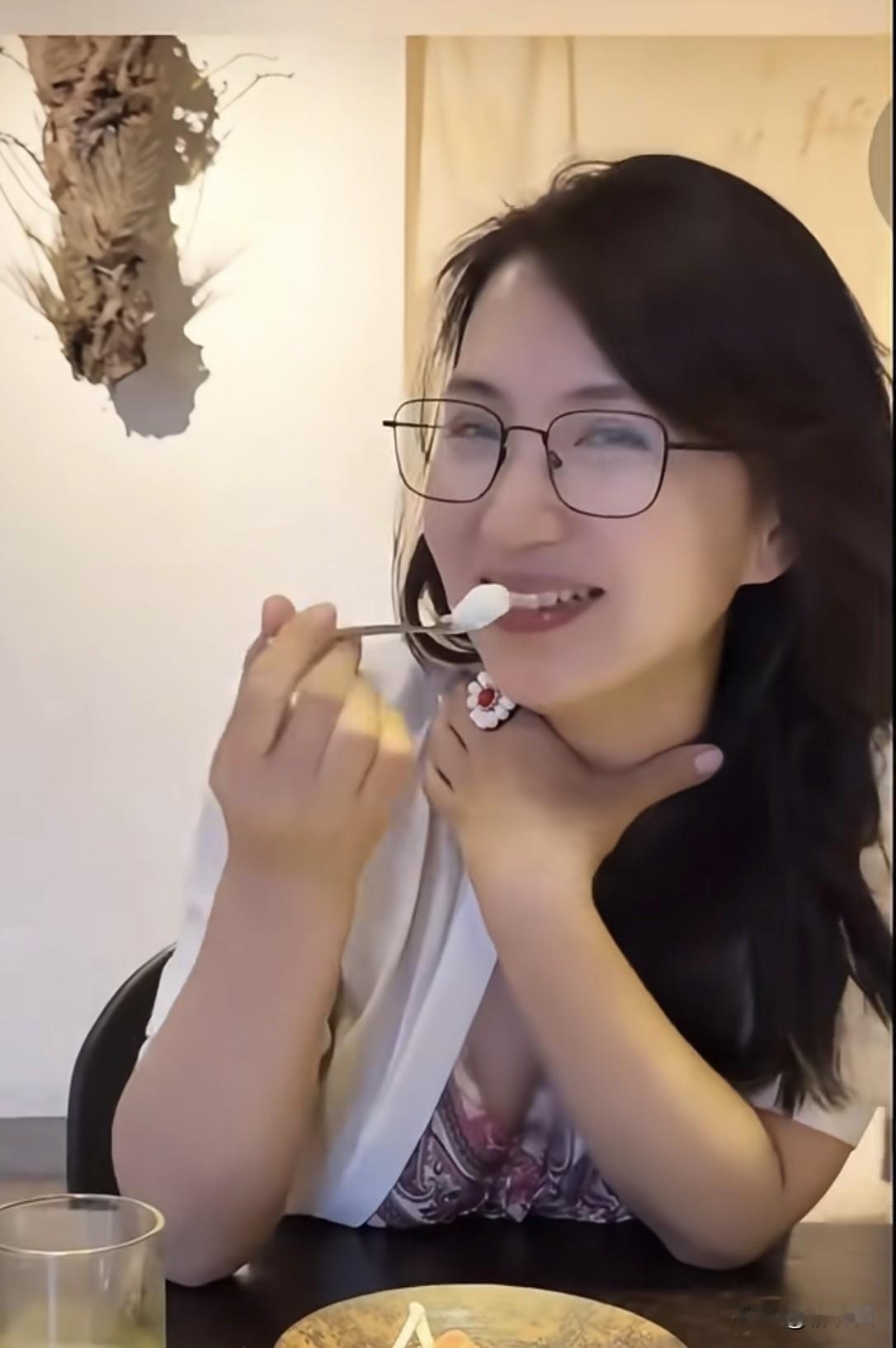 45岁陈好“掐脖子”吃甜品,满脸享受连眼神都是对美食的认可。 照片中,46岁的