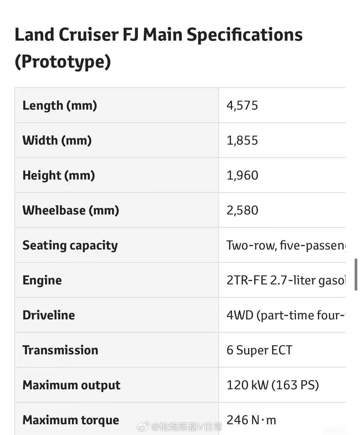 丰田FJ让我有点失望啊,外观变化失去了老款的精髓,2.7的发动机放在今天就真的太弱了。作为2.7普拉多的老车主,我真心不建议大家选择这款动力[允悲],高速超车都要提前很久准备才能超的过去。硬派越野