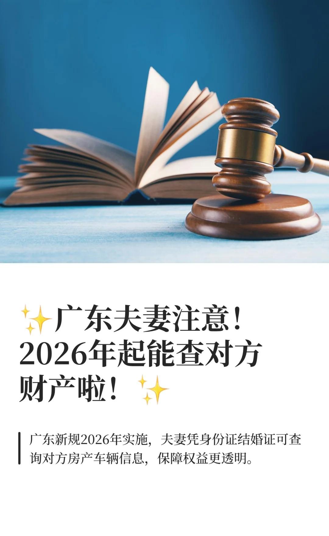✨广东夫妻注意!2026年起能查对方财产啦! 从2026年1月1日起,广东省内夫