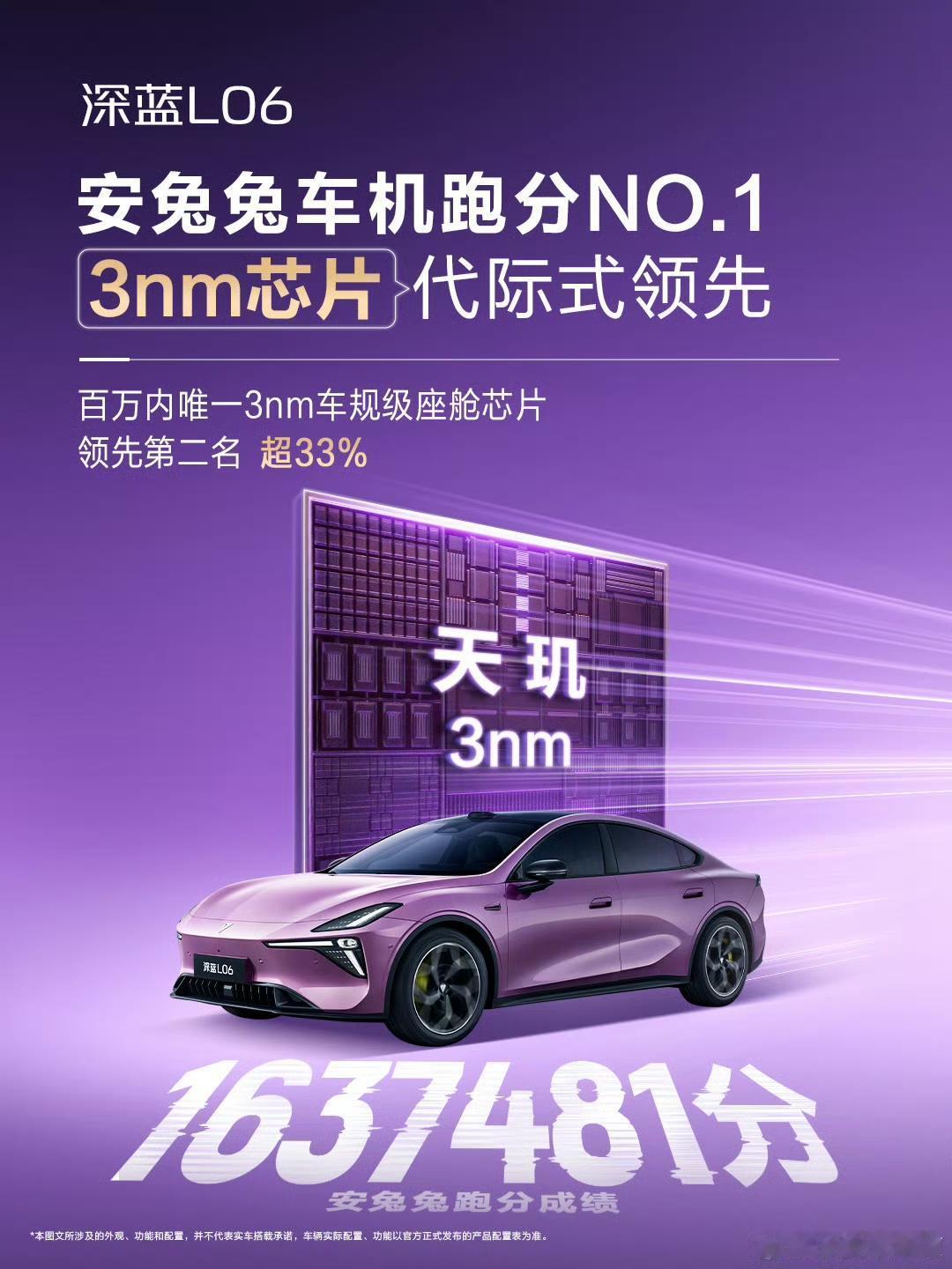 安兔兔车机版性能排行榜 1、深蓝L06 1637481分 2、魏牌全新蓝山 1223060分 3、极氪007 1075244分 4、小米SU7 1056735分 5、腾势Z9GT 993796分 6、小鹏X9 965631分 7、奔驰E 963130分 8、腾势Z9 957177分 9、2024款理想L系列 914620分 10、2024款蔚来ES6 913545分 搭载3nm天玑S1 Ultra座舱芯片的深蓝L06勇夺第一,与第二名的分数差距挺大。