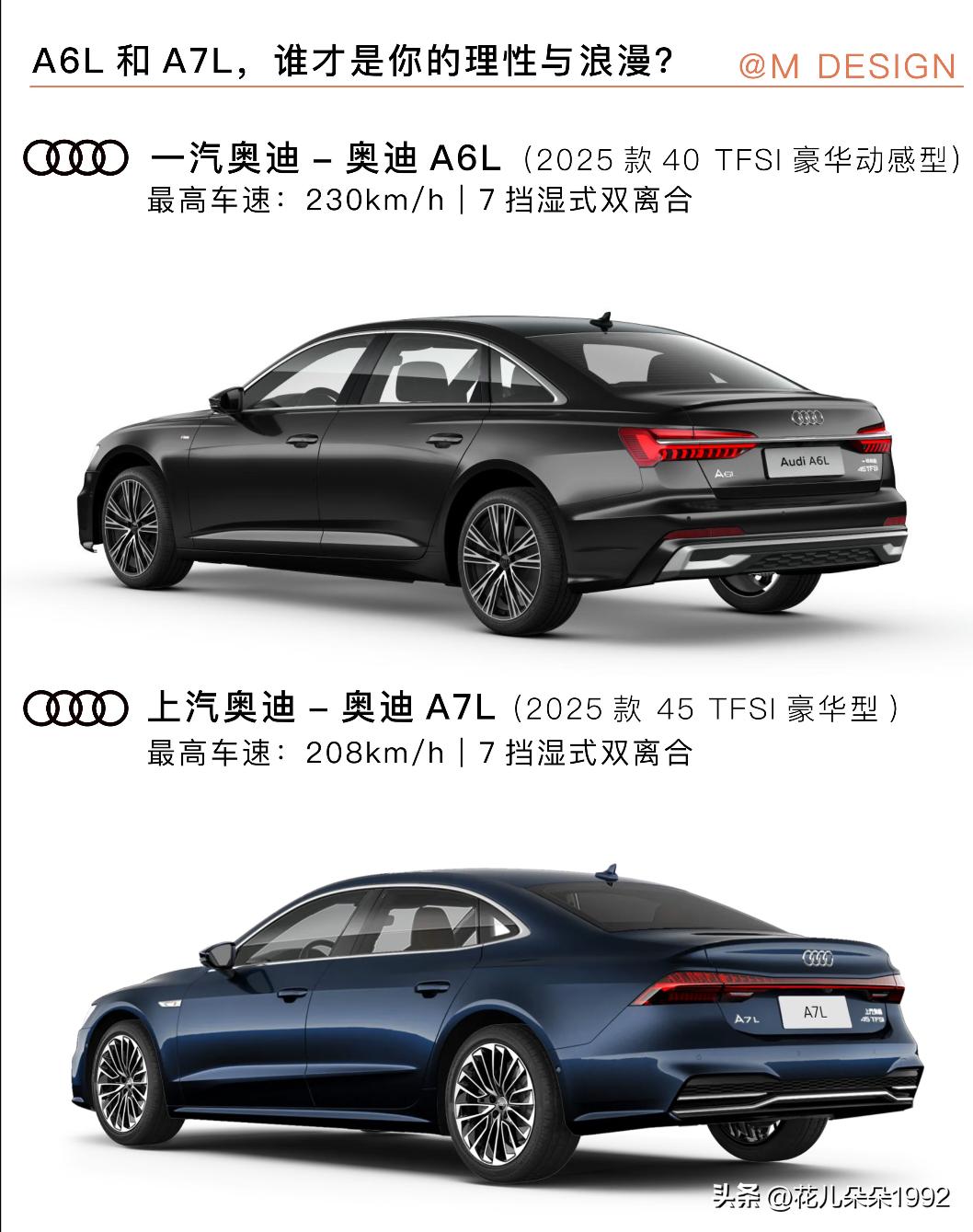 为什么奥迪A7L总卖不过A6L?设计师说出真相。 作为汽车设计师,我常常把一汽奥迪A6L和上汽奥迪A7L放在一起看,它们代表了奥迪在中国市场的两种表达。A6L的设计语言偏向“秩序感”,整体线条笔直、干练,给人一种稳重与可靠的安全感。相比之下,A7L延续了奥迪轿跑的优雅比例,低趴的车身姿态和流畅的腰线更有仪式感,视觉冲击力明显强于A6L。 但为什么在销量上,A6L依旧更有优势?答案其实很现实:A6L的用户群体大多是成熟商务人群,他们需要一辆“身份名片”,而A6L精准契合了这种需求。A7L的气质则更偏个性化,适合追求格调、喜欢与众不同的年轻群体,可惜这一细分人群基数还没大到能支撑销量。 设计背后,折射的其实是品牌策略。A6L是市场“基本盘”,上汽奥迪的A7L则像是品牌的“试探者”,承担着探索新审美和新客群的任务。上汽奥迪要想突破,机会点或许在于更鲜明的差异化,比如强调“轿跑+豪华”的生活方式标签,而不是与A6L同场竞争。 这场对比更像是理性与浪漫的交锋。A6L让人安心,A7L让人心动。最终的选择,其实是每个人对生活方式的投射。有时候,我们买车买的并不是冰冷的配置,而是对自己身份和心态的一种认同。 理性与浪漫,哪个更打动你? 奥迪A6l 上汽奥迪a6l 奥迪c7a6l 奥迪A7 奥迪a7l 奥迪a7c8 奥迪a6l轿跑