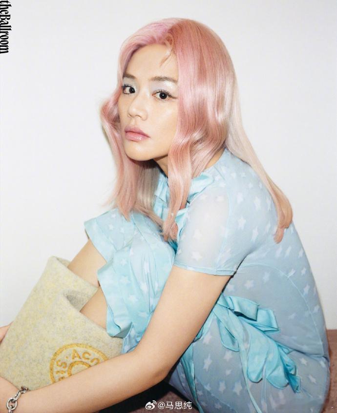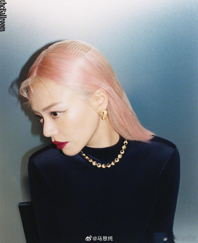 马思纯粉发红皮衣造型马思纯粉发大红唇