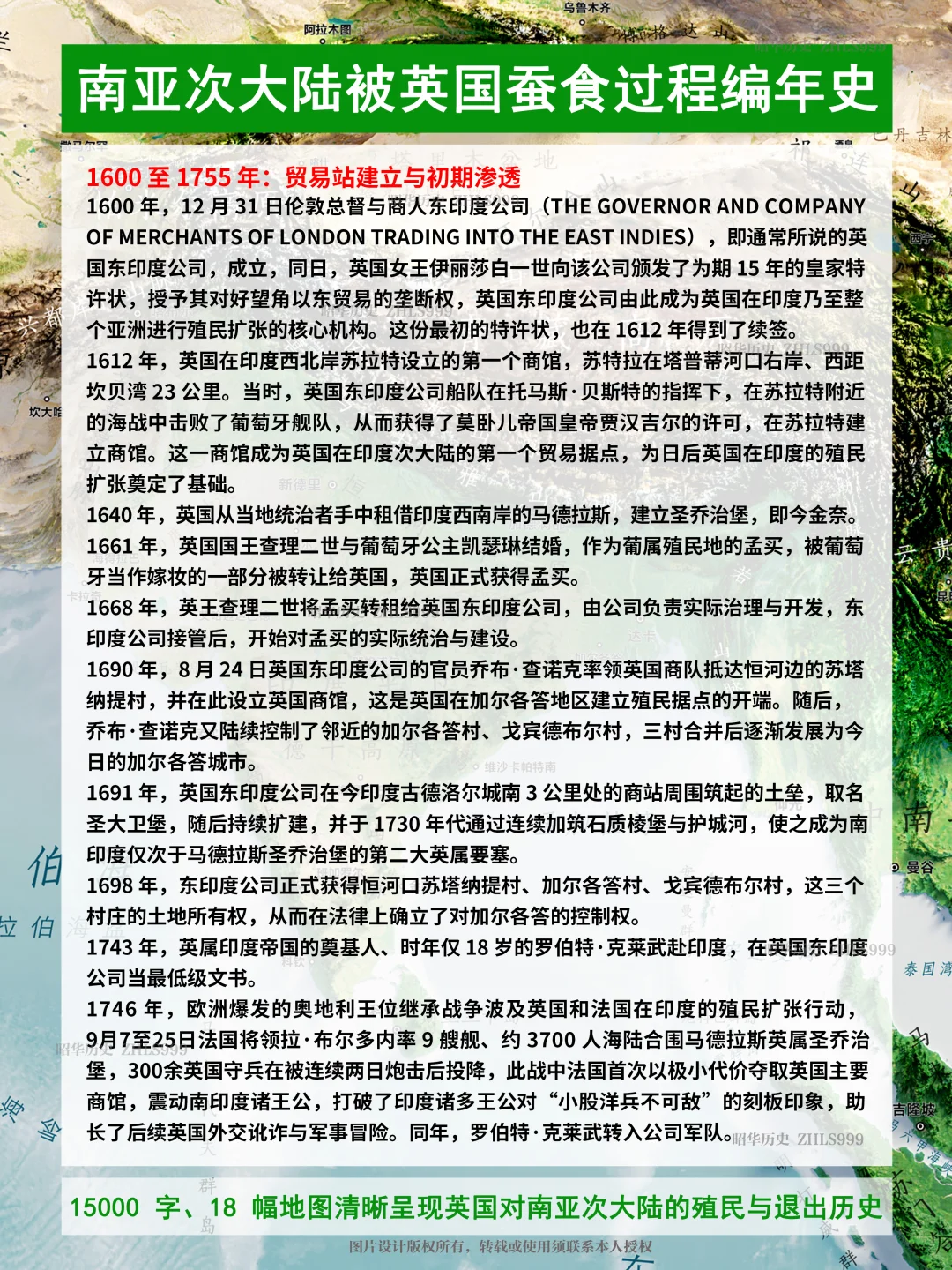 ▫️1600年,12月31日伦敦总督与商人东印度公司(The Governor and Company of Merchants of London trading into the East Indies),即通常所说的英国东印度公司,成立,同日,英国女王伊丽莎白一世向该公司颁发了为期15年的皇家特许状,授予其对好望角以东贸易的垄断权,英国东印度公司由此成为英国在印度乃至整个亚洲进行殖民扩张的核心机构。这份最初的特许状,也在1612年得到了续签。