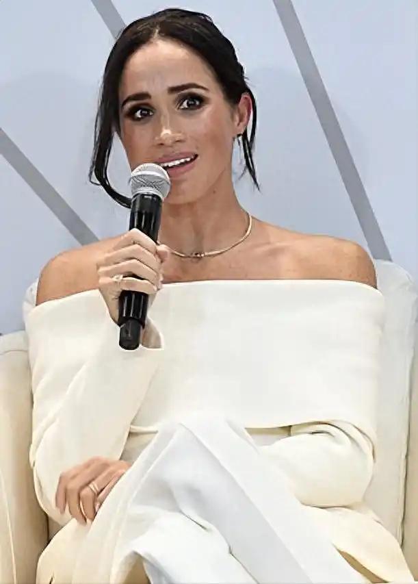 直角肩更适合露肩装吧?[灵光一闪] 自认魅力无法挡的梅根,坚持秀自身优势, 她爱选择那些削肩设计或露肩上衣, 以此轻松驾驭时尚的她似乎在说: 我有个秘密,我长得多美,人人都爱我。[呲牙]