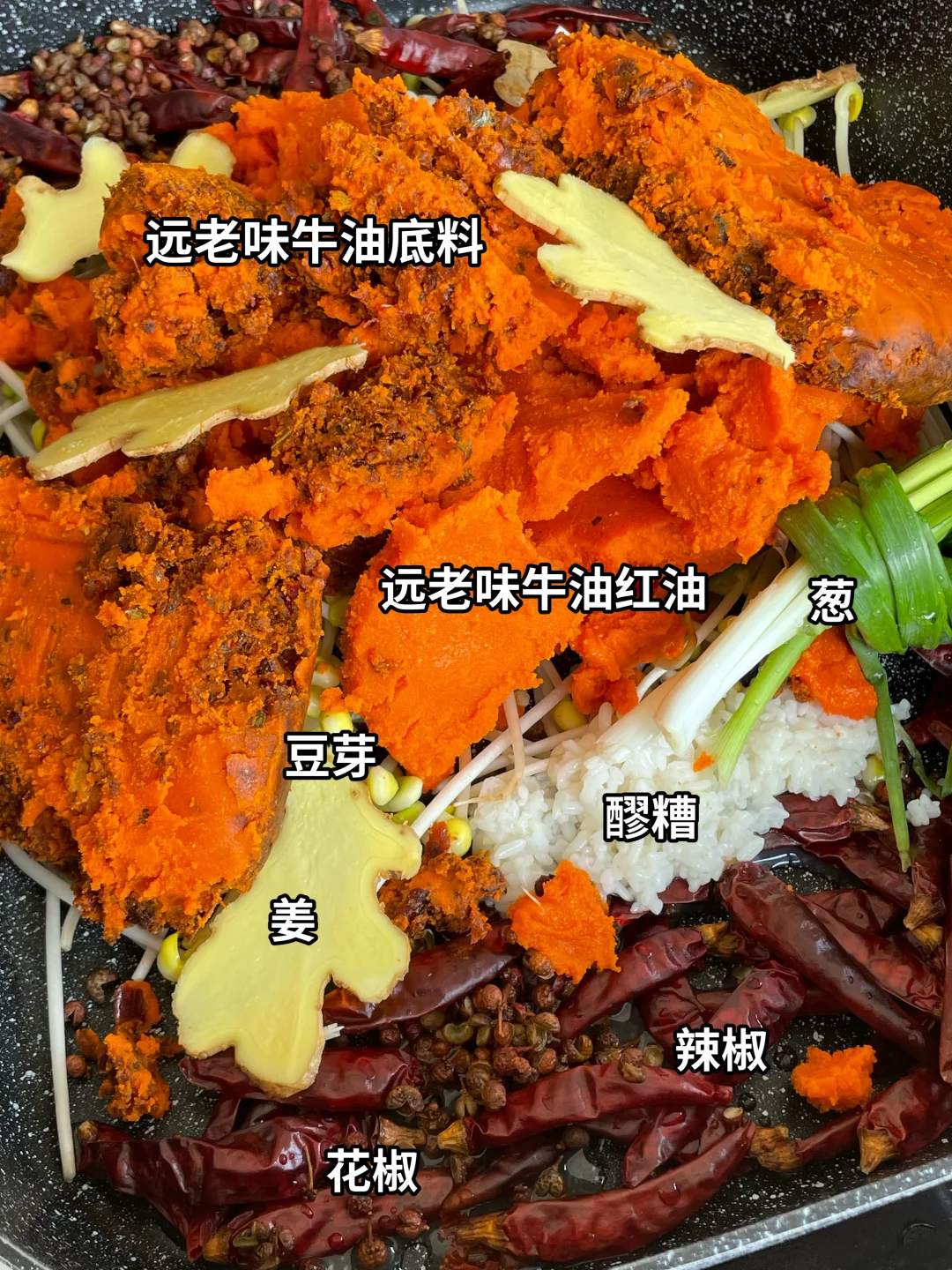 🌶️食材:自己喜欢的菜,远老味牛油底料,远老味牛油红油