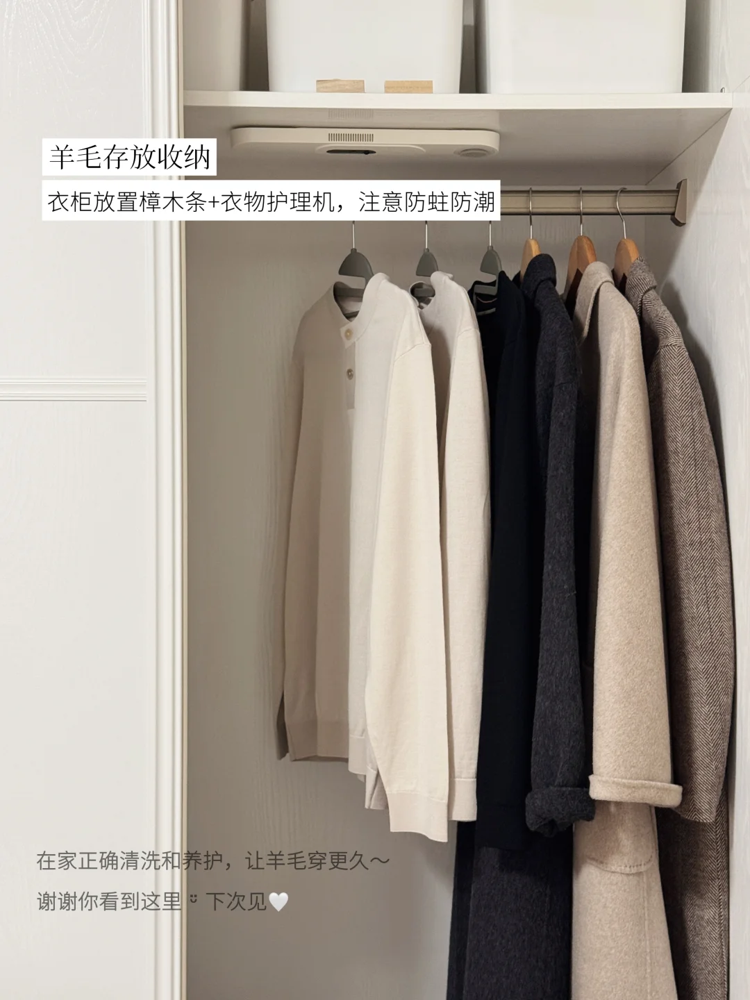 收纳:带弧度的衣架防变形,收纳注意防蛀防潮