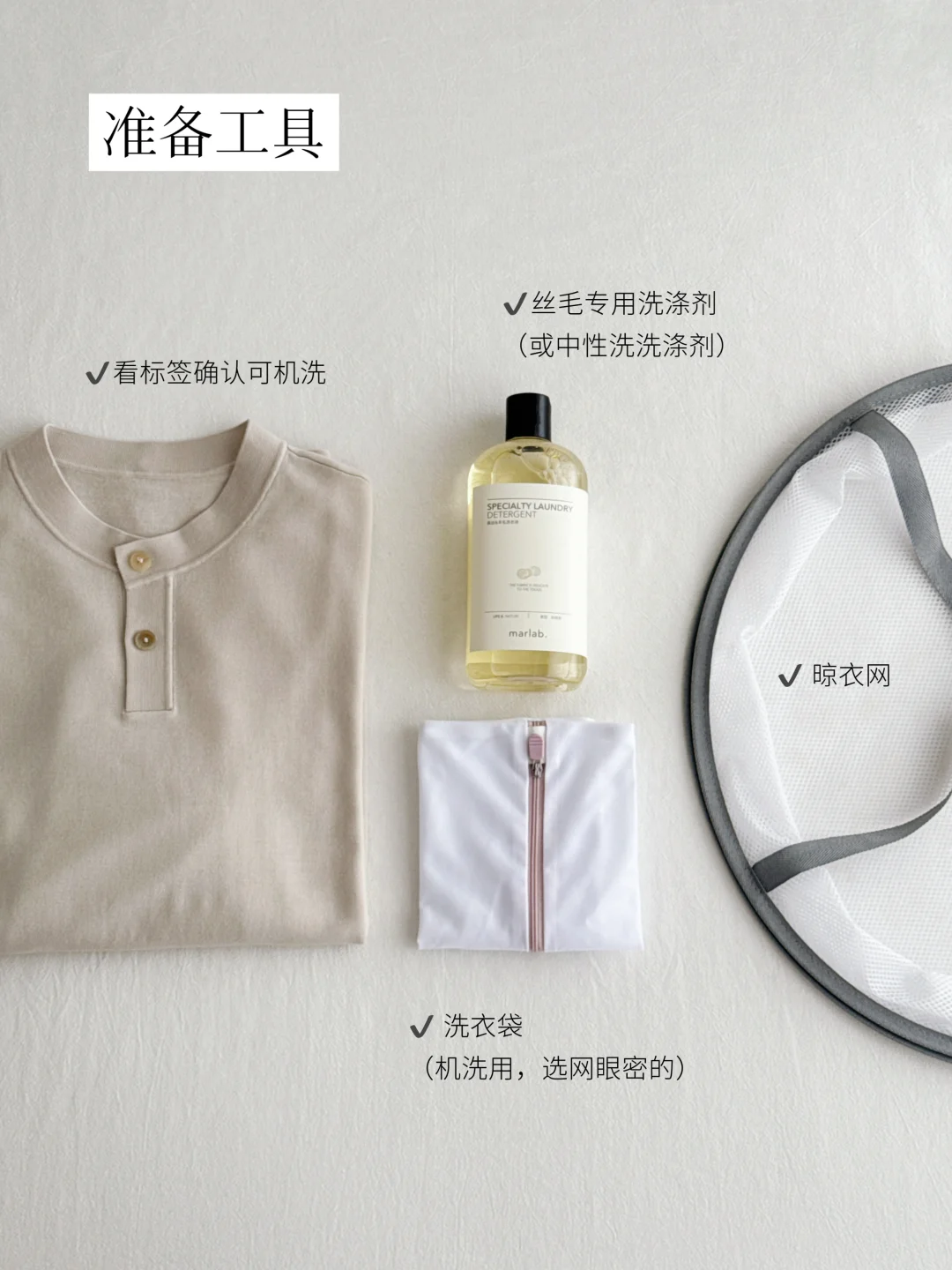 洗涤工具:羊毛专用洗涤剂、洗衣袋、晾衣网