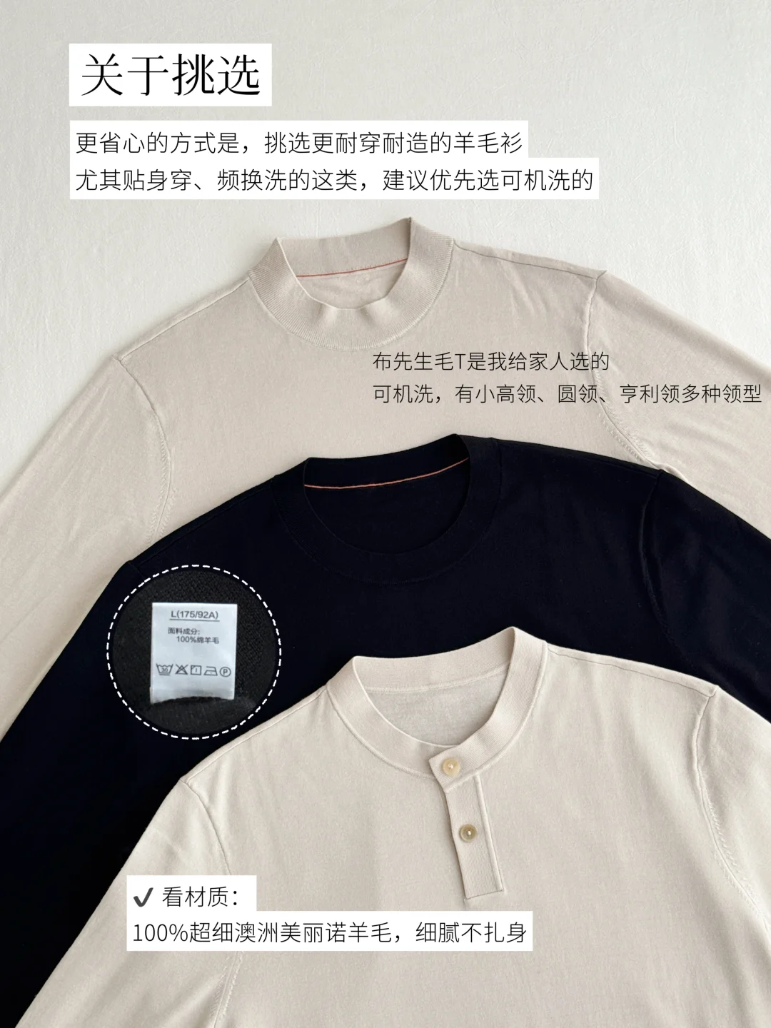 更省心的方式是,挑选更耐穿耐造的羊毛衫,从源头减少打理负担。布先生毛T是我给家人选的