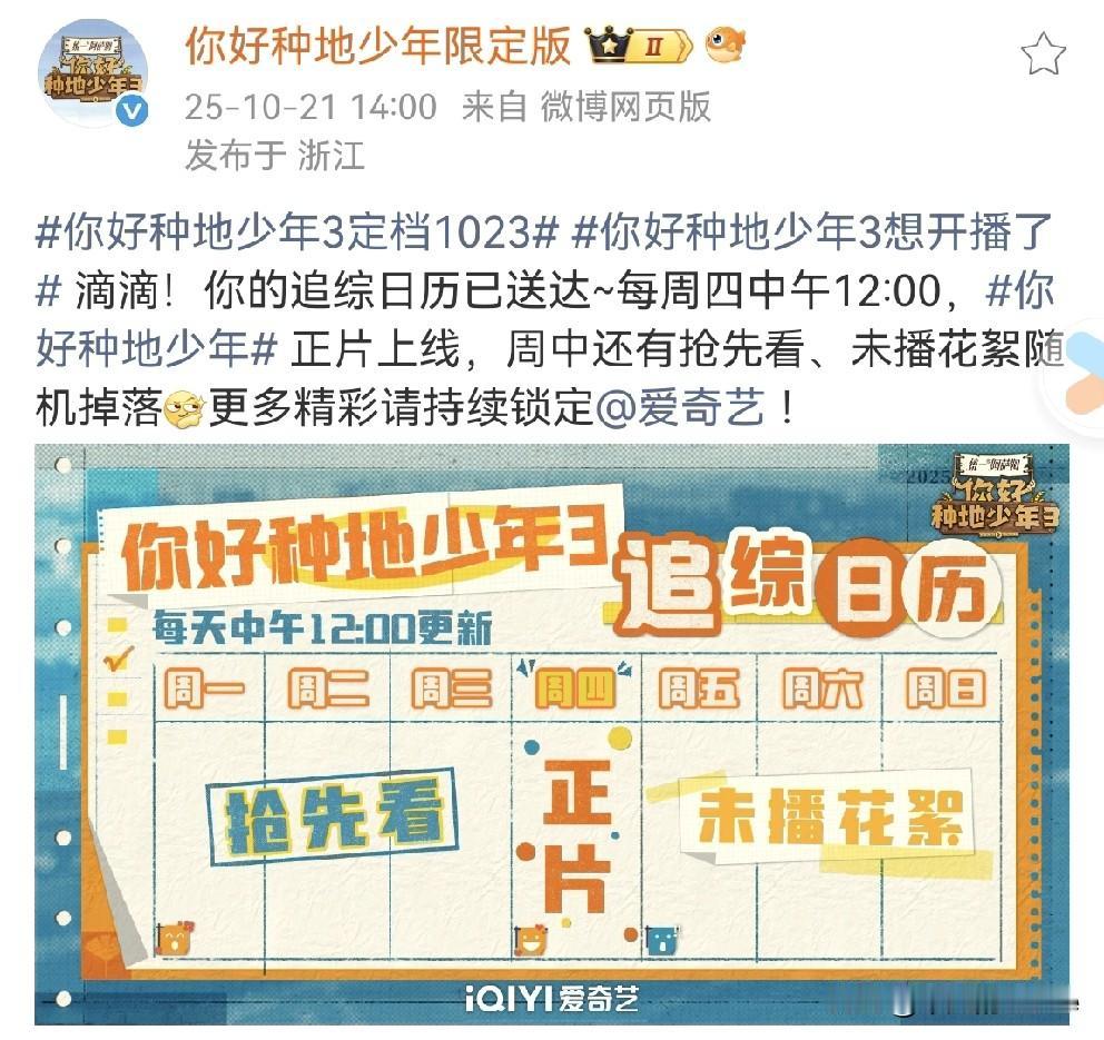 10月21日,十个勤天团综《你好种地少年3》正式官宣定档,该综艺将于10月23日开播。 这一季的录制地是在后陡门,10位种地少年都在,只可惜他们没有出门游学,这是个遗憾。 《种地吧》第四季已经在策划当中,十个勤天的成员现在都比较忙,只有个别成员没什么活儿。 《种地吧3》我只看了前半部分,后半部分我就没有追了,因为有点看不下去了。 对于十个勤天团综《你好种地少年3》定档,大家有什么想说的?