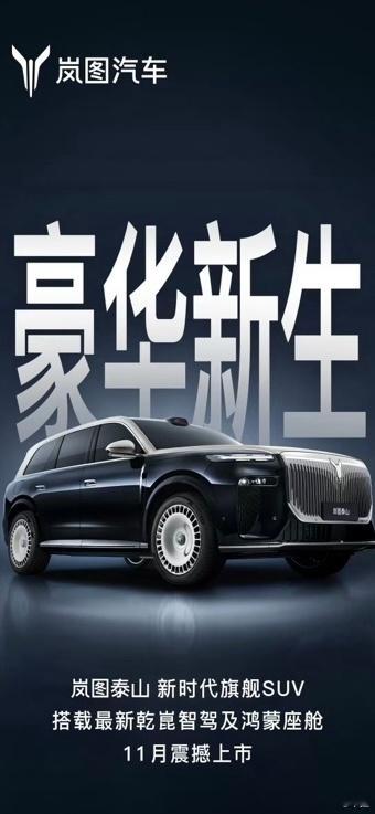 岚图泰山官宣11月上市 鸿蒙座舱5.1+华为超500线激光雷达首发在望