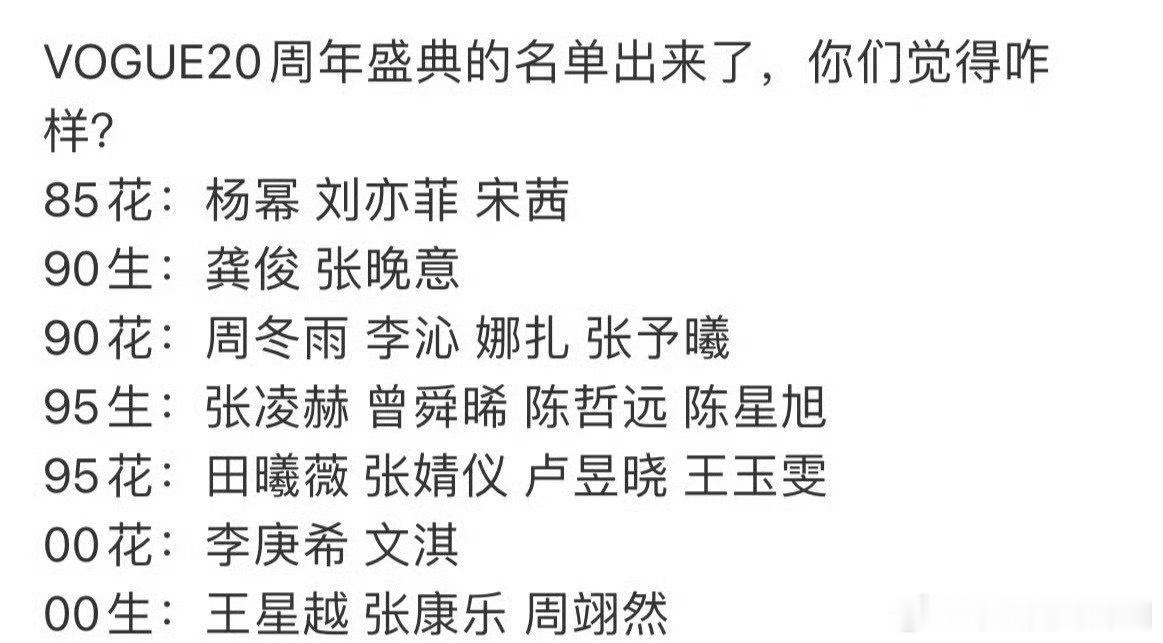 评价下VOGUE20周年盛典的阵容刘冲同时阴阳了来的和没来的
