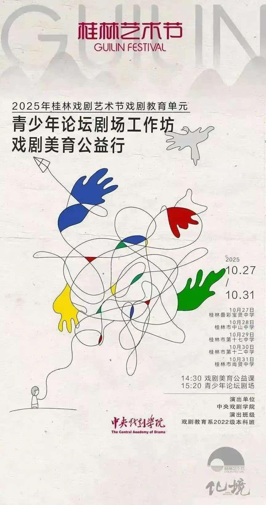 没想到,你是这样的桂林!小时候语文课本上有一篇文章名叫《桂林山水》 头一句话是这样说的,桂林山水甲天下,从那以后对于桂林山水魂牵梦绕,我想去桂林,看看漓江,感受舟行碧波上,人在画中游,2025年10月24日到11月2日的桂林艺术节来了! 艺术节的主题为“化境”,将艺术与桂林的山山水水融为一体,让戏剧化进山水中,把艺术化入桂林美好的仙境之中。届时,漓江两公里的碧波,十二座延绵的青山就是最美的背景板,在这里将开启一场艺术的盛宴,戏剧,美术,音乐三大板块轮番上演,精彩纷呈。 戏剧迷们,不仅有《戏悟》,《庄周梦蝶》,《看棋亭》等各种不同风格的表演让你过足戏瘾,更有刘敏涛,松岩等大咖坐镇艺术大讲堂。音乐爱好者也有惊喜,《饮歌--香港电影音乐会》让我们重回当年,那个刀光剑影,江湖侠义的曾经。喜欢美术的朋友,黄格胜《漓江百里图》创作40周年特展别有韵味,让你沉醉在丹青泼墨的风景之中。还有更多数不尽的精彩,看不够的风光…… 10月底的桂林,山山水水如诗如画,有人间仙境的美景,更有这一场豪华的艺术盛宴,让我们一起走进桂林,融入这迷人的风景!桂林艺术节