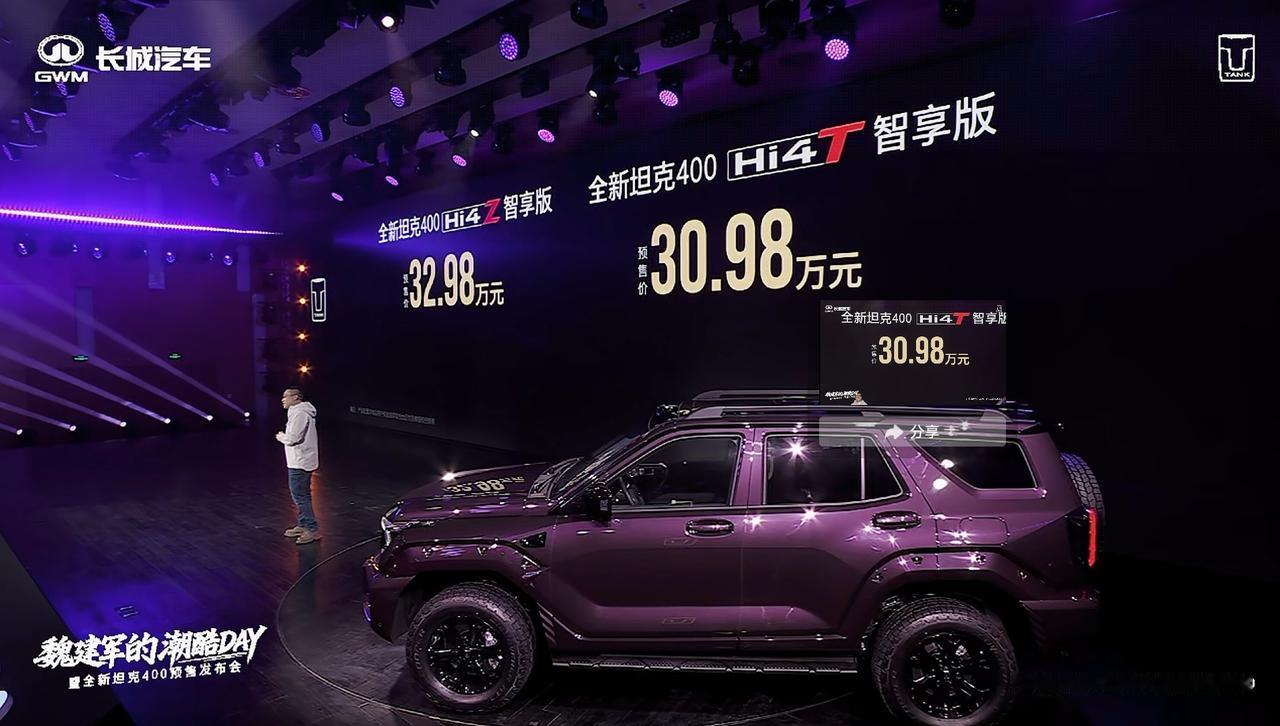 全新坦克400价格公布: Hi4Z智享版:32.98万元 Hi4T智享版:3