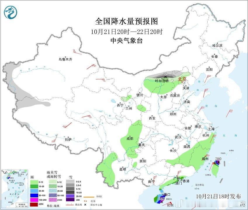 台风+冷空气的降水,明天在台湾北部、海南东部和南部还会体现出来,有暴雨-大暴雨,局地还有特大暴雨。另外华北因为切变线影响也有雨雪。后天,台湾北部和海南岛的降雨减弱,但依然还有些大雨-暴雨,局地大暴雨。24日海南降雨基本结束,台湾北部在冷空气东北风影响下,依然有雨。