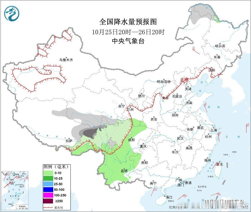 此外23-25日,高原地区有槽东移,导致我国西北地区东部、华北西部、黄淮西部、四川盆地及云贵高原等地有小雨。高原上部分地区在23日晚-24日可能出现明显降雪。26日降水收缩到西南。总体看,未来西南一带,降水还是相对频繁,但整体水汽条件较差,降水强度不会很强。
