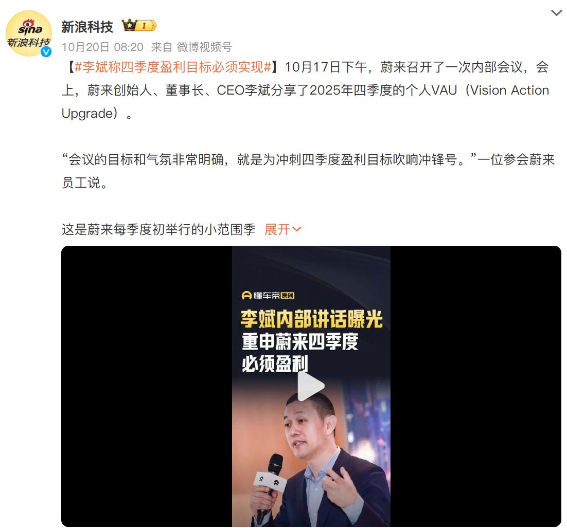 蔚来向四季度盈利发起冲锋! 蔚来上周交付量相当不错,三个品牌累计破万了。 其中蔚