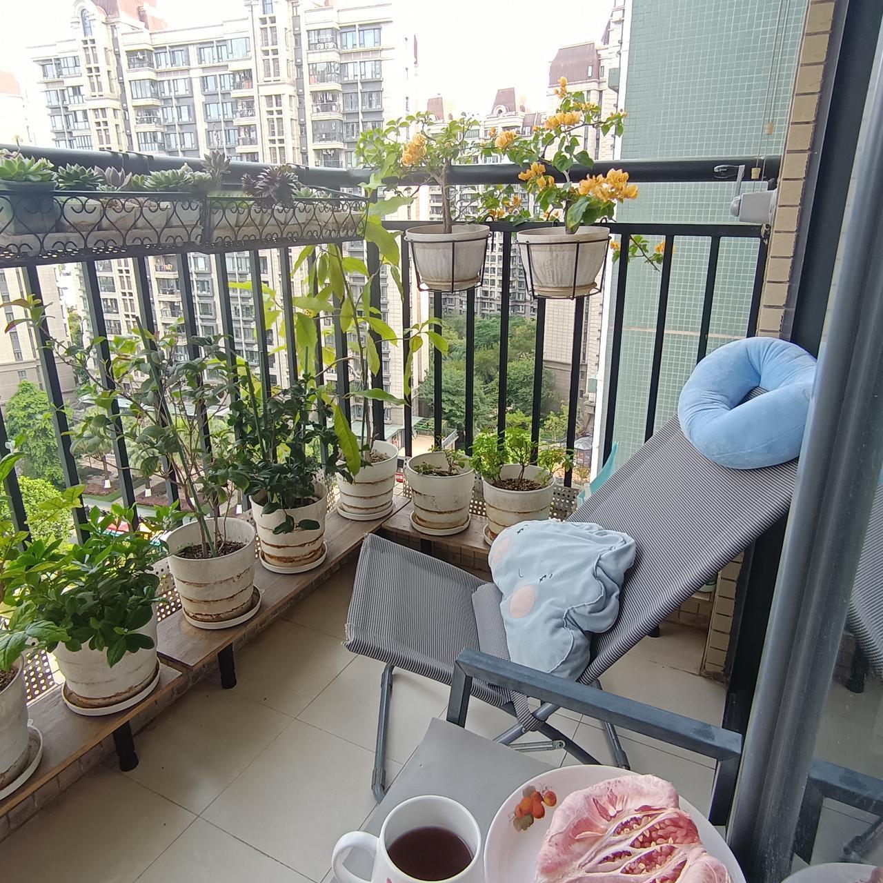 自从住进了公租房,一年四季,我最喜欢的就是秋天了,没别的,因为秋天这个阳台真的太舒服了。 记得18年看恒大的开放房源时,我第一眼看上的就是这个阳台,虽然那时样板房的阳台面向小区,但相对于公租房来说,这个阳台足够开阳。 虽然在意向登记公示期间我已经推算出我能分配到恒大,但住哪一个单间要摇号才知道,怀着忐忑的心情看到我名字后面的地址,打开户型图一看,真的很幸运,高楼层,阳台视野开阔,几乎没什么遮挡。 拿到钥匙后,我第一时间带着家人来看,我哥说:“什么都不用说,这个阳台就够值钱了,因为有钱难买东南向。”而我这个阳台正是东南向。 我一直都不是喜欢种花的人,因为以前没种过,也不会种,但自从有了这个阳台,也慢慢学起来,虽然常有种死,但磕磕碰碰也算是种出了几朵能看的,到了这个秋风送爽的季节,我总喜欢坐在沙滩椅上,看看盛开的三角梅,听听风吹过叶子的声音,抬头看看蓝天上飘过的白云,让时间慢慢流逝,静静呆一下午……