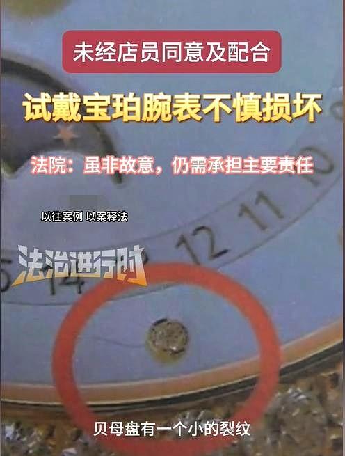 北京一女子试戴价值21万元手表不慎滑落致裂痕。 店家要求赔3.1万元,女子称非故意且店员未提醒,不肯赔。 双方闹上法院,法院判决赵女士赔偿1.78万元。 网友对此说道: 这应该碰瓷。 手腕上掉在柜台上,怎么会摔坏? 明显敲诈勒索。 掉地下这个我信,柜台上怎么会坏? 证明产品质量有问题。 法官判决,为什么不详细分析? 申公安机关侦查。 这样的表店一般人不敢进!这二人是富婆就买下吧,没钱不要去显摆显摆! 不要相信……纯属编造……这么昂贵的东西……劳务市场在家种地的人……能去买吗? 去买的人是什么水平阶层? 都是有过程的……哼! 21万的手表这么点高,一摔就坏了,我是不信的。 我一只上海牌手表一公尺摔在地上都没有坏,越好的就经不起这点折腾。
