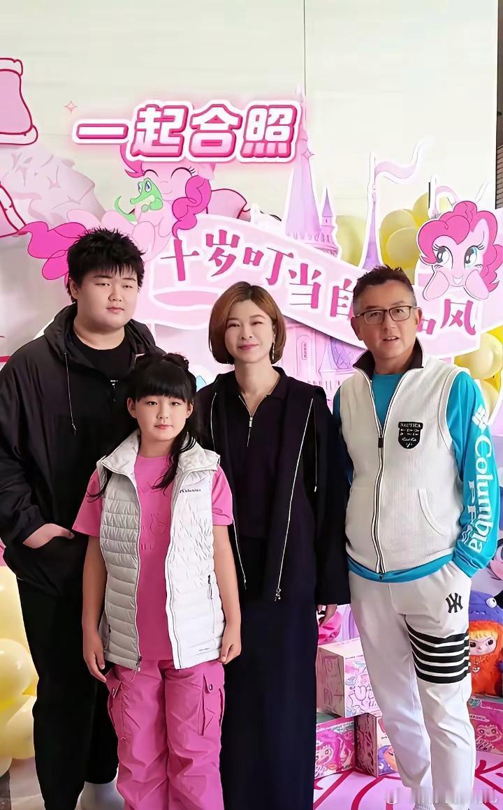 这是王一博老板杜华给女儿小叮当办十岁生日宴的家庭合影!都说女儿像爸爸,儿子像妈妈