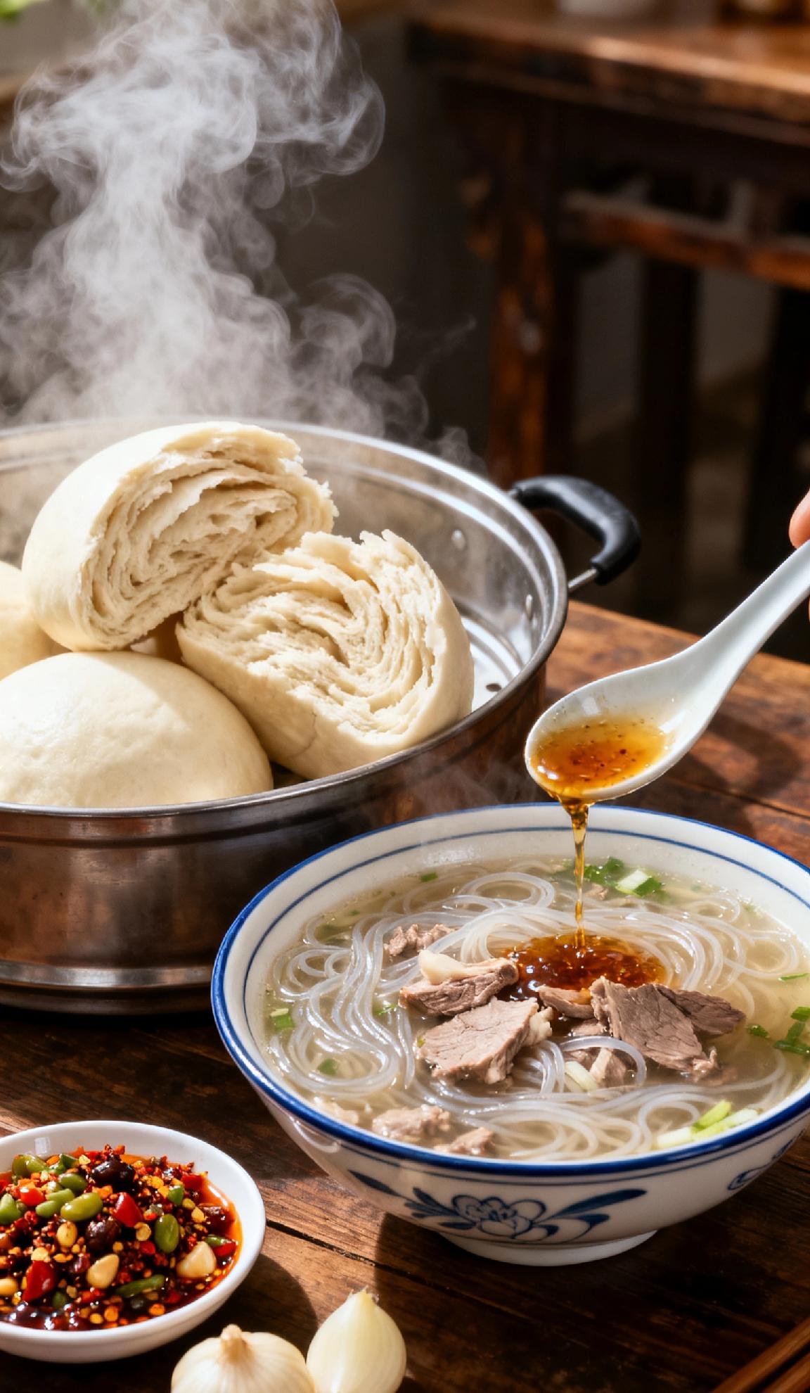 蒲城人的家常桌,藏着最浓的烟火气!刚揭锅的椽头蒸馍冒着白汽,筋道得能撕出层次;一勺八宝辣子拌进去,油香裹着椒香直钻鼻腔。再配碗温乎的水盆羊肉,粉丝吸满鲜汤,就着糖蒜一口落胃。快拍张图晒晒,这就是蒲城人藏在三餐里的幸福滋味~ 蒲城特产 蒲城水盆羊肉串