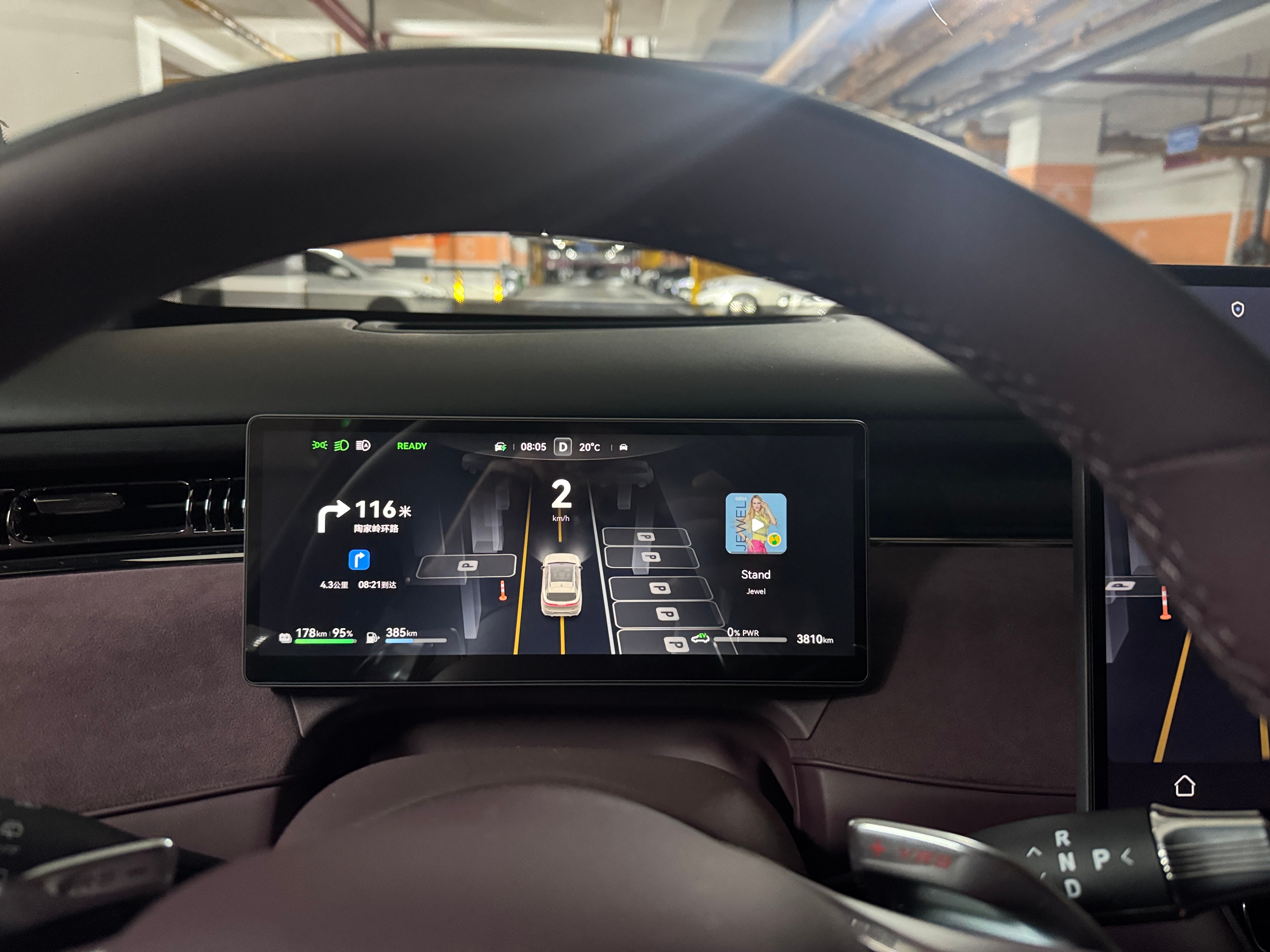 95%的soc,实际续航178km,也就是纯电从95%开始一直开到20%soc,它会自动切混动,纯电可以开165km左右。
